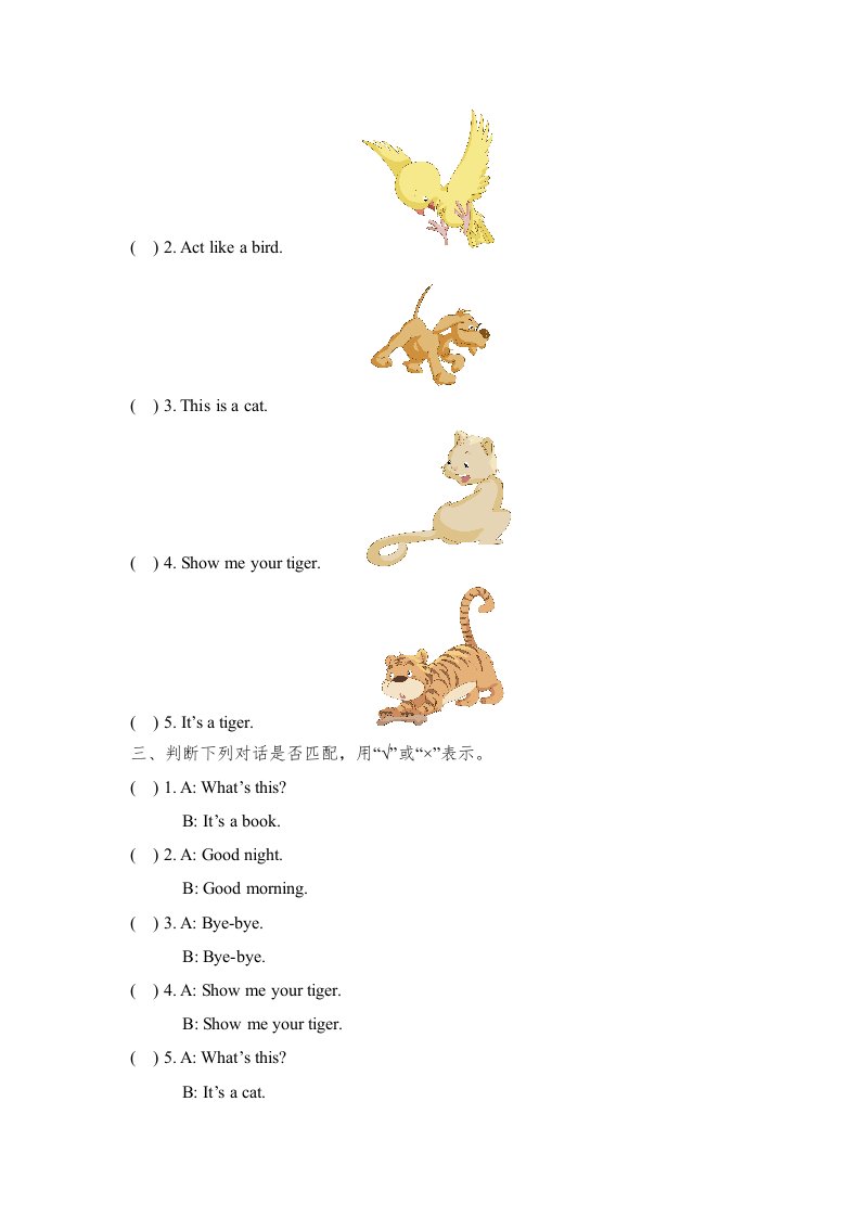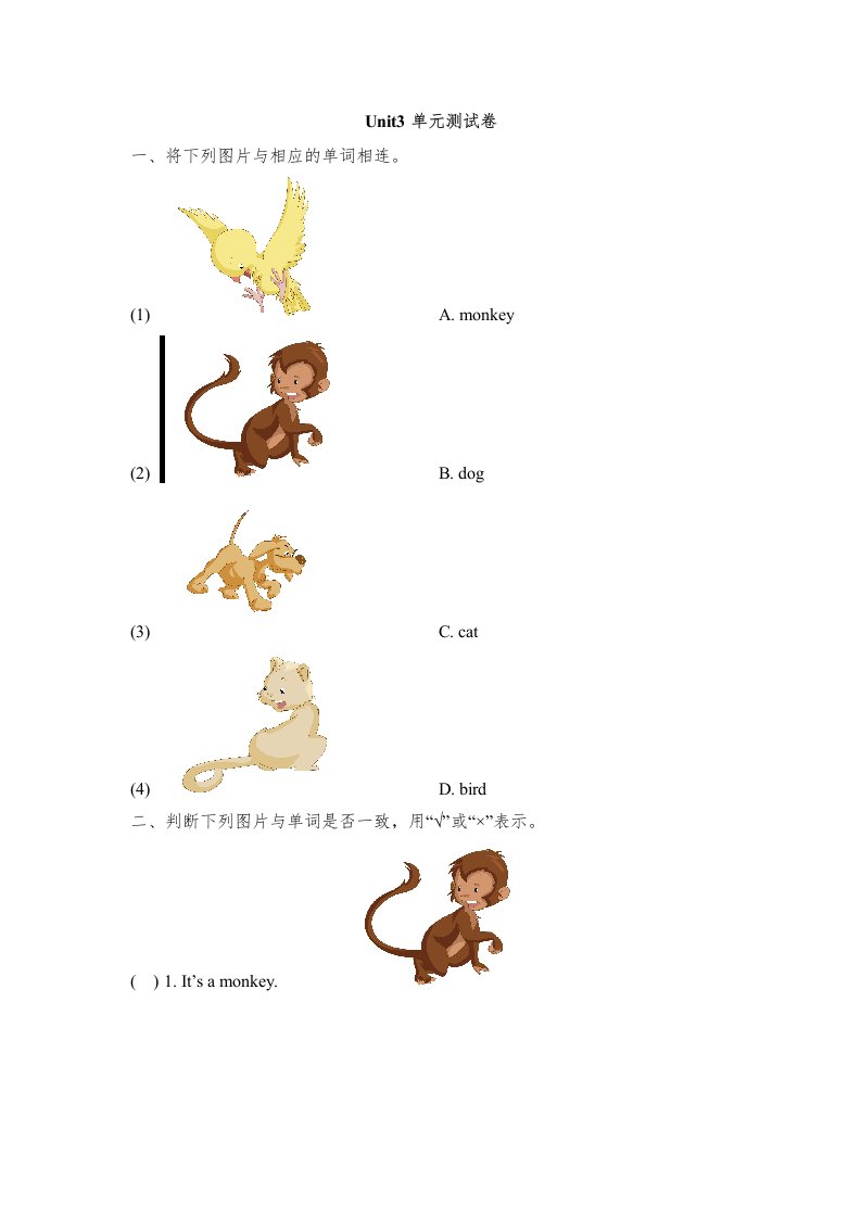 一年级英语上册Unit3_单元测试卷(人教一起点)_共3页