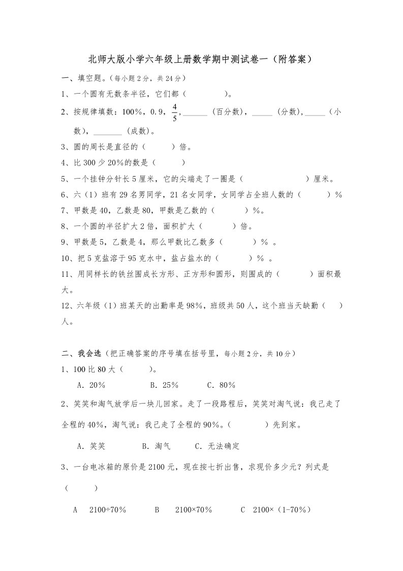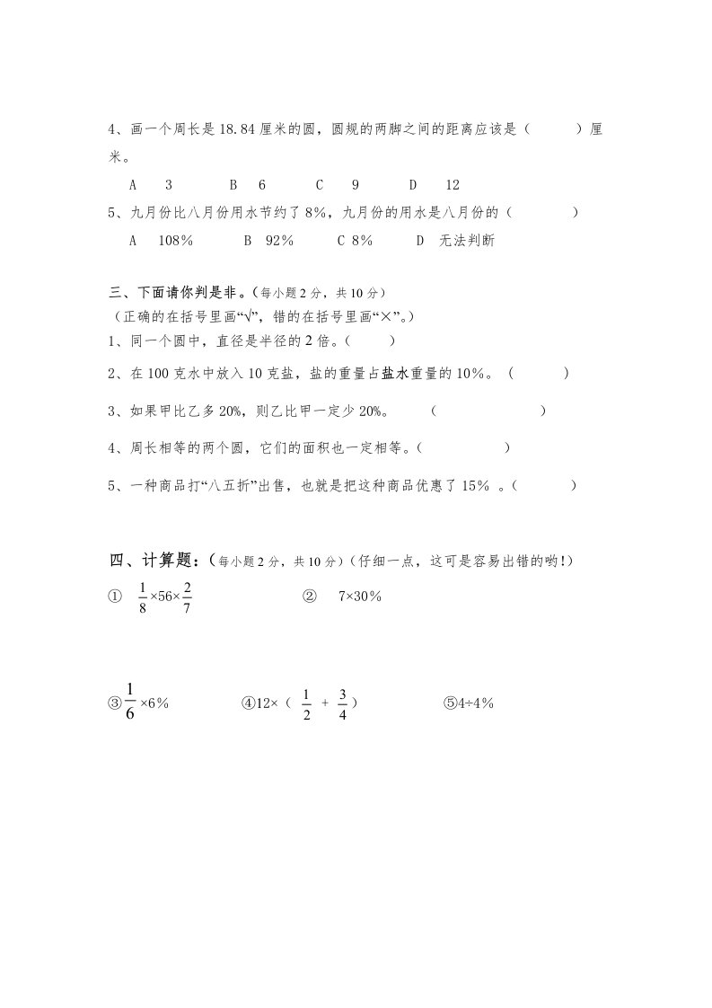 当前位置: 首页小学资源小学六年级正文 六年级数学上册期中练习(2)(北师大版)_共6页 小学六年级 1 周前 0 0 5 以上为部分内容预览,如需源文档请登录您的会员账号进行下载! 声明:本站所有文章,如无特殊说明或标注,均为本站原创发布。任何个人或组织,在未征得本站同意时,禁止复制、盗用、采集、发布本站内容到任何网站、书籍等各类媒体平台。如若本站内容侵犯了原著者的合法权益,可联系我们进行处理。 尚学资源永久会员 打赏 收藏 海报 链接