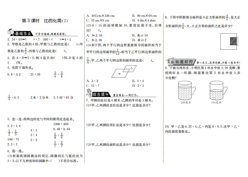 六年级数学上册6.3比的化简(2)(北师大版)_共2页