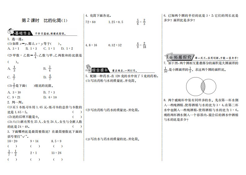 六年级数学上册6.2比的化简(1)(北师大版)_共2页