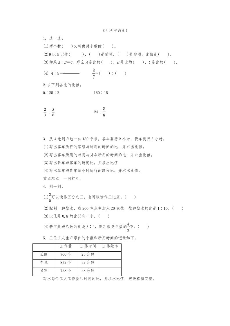 六年级数学上册6.1生活中的比(北师大版)_共2页