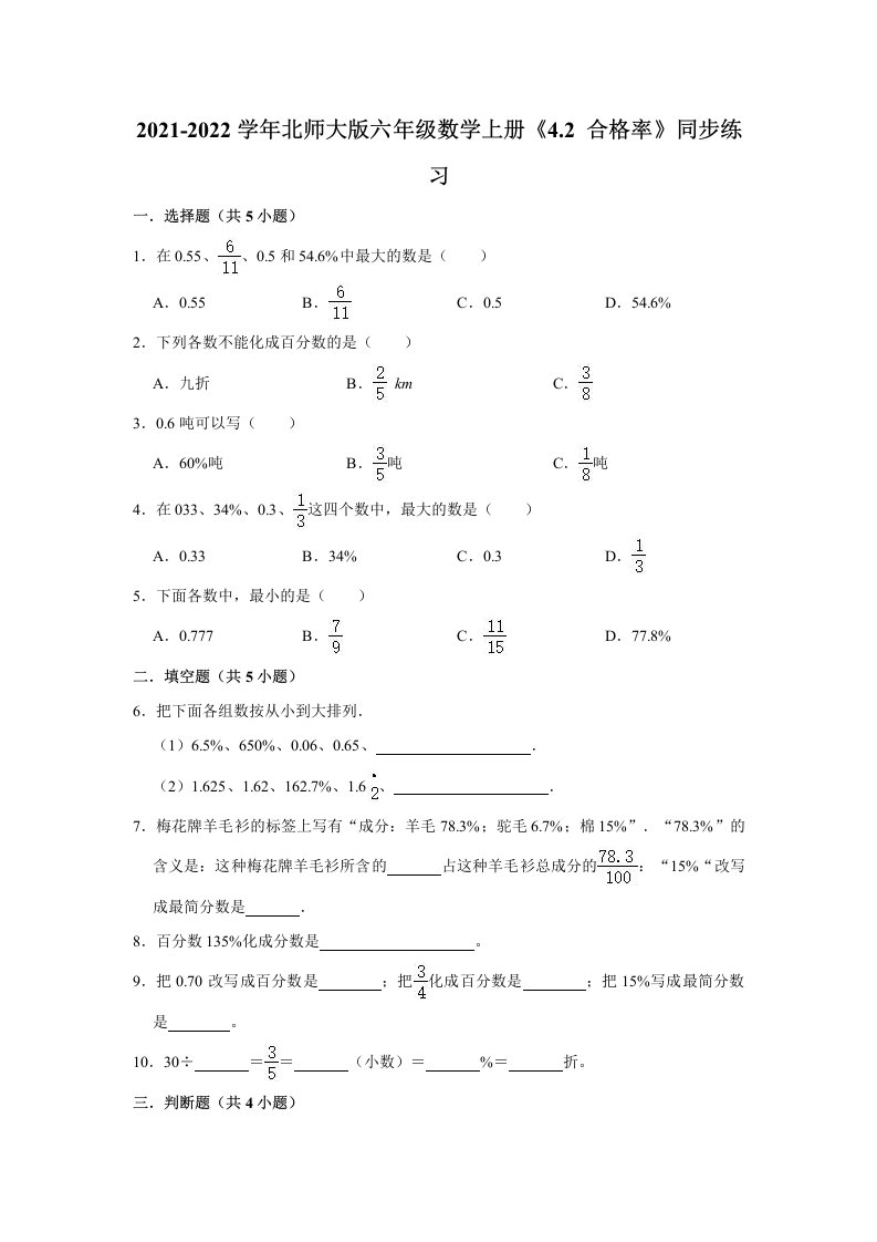 当前位置: 首页小学资源小学六年级正文 六年级数学上册4.2合格率》同步练习(有答案)(北师大版)_共8页 小学六年级 7 天前 0 0 5 以上为部分内容预览,如需源文档请登录您的会员账号进行下载! 声明:本站所有文章,如无特殊说明或标注,均为本站原创发布。任何个人或组织,在未征得本站同意时,禁止复制、盗用、采集、发布本站内容到任何网站、书籍等各类媒体平台。如若本站内容侵犯了原著者的合法权益,可联系我们进行处理。 尚学资源永久会员 打赏 收藏 海报 链接