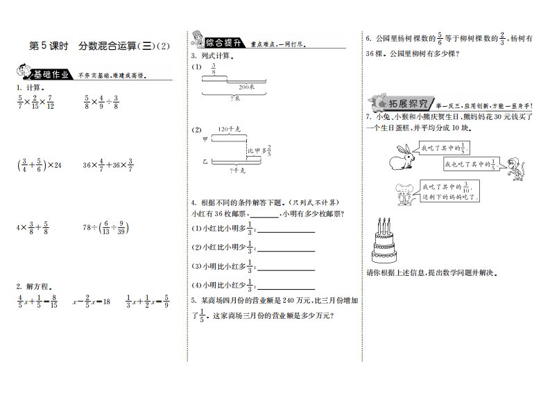 六年级数学上册2.5分数混合运算(三)(2)(北师大版)_共2页