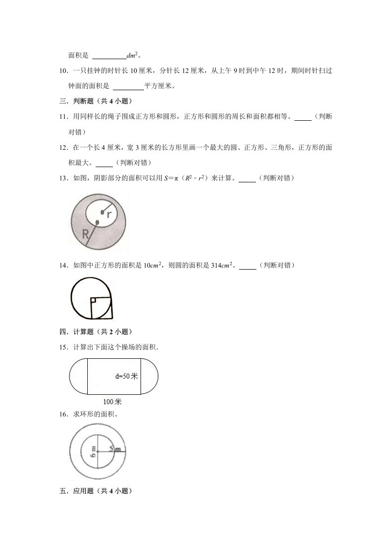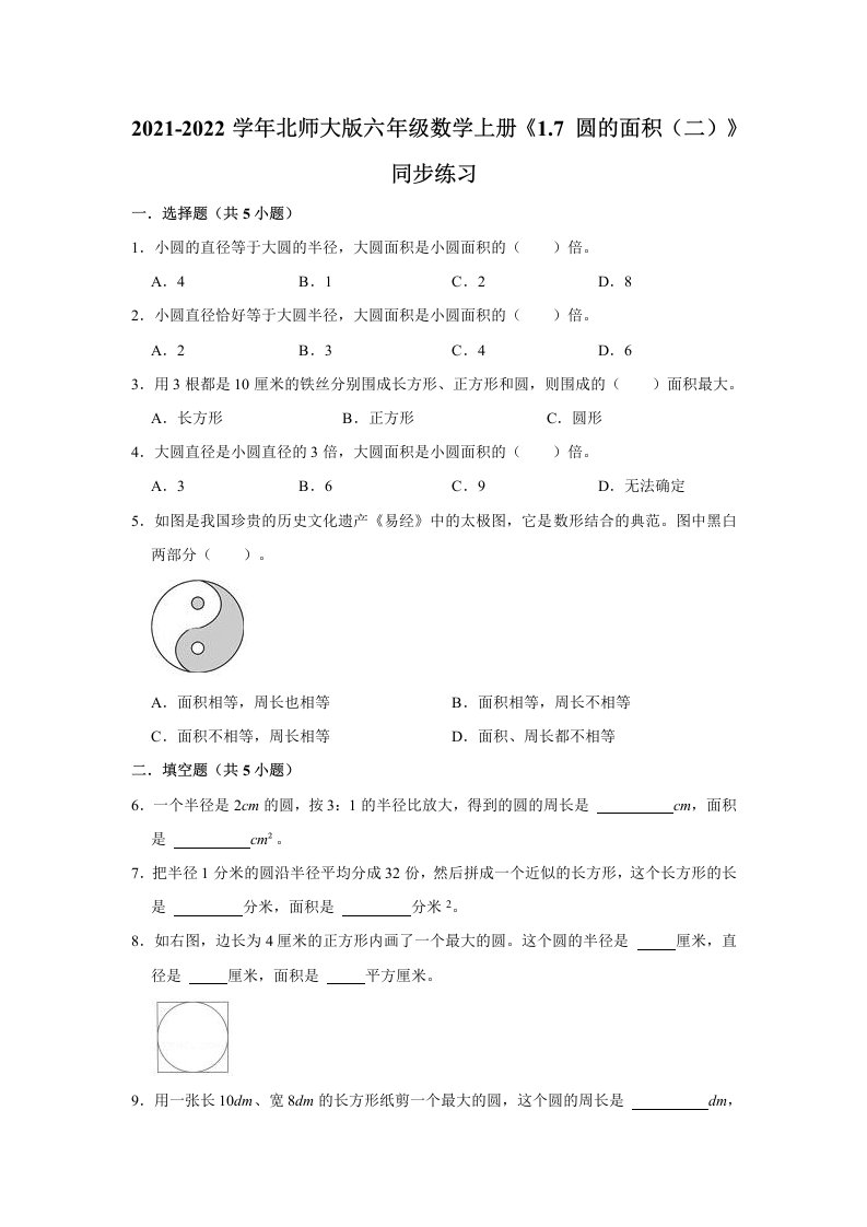 六年级数学上册1.7圆的面积(二)》同步练习(有答案)(北师大版)_共9页