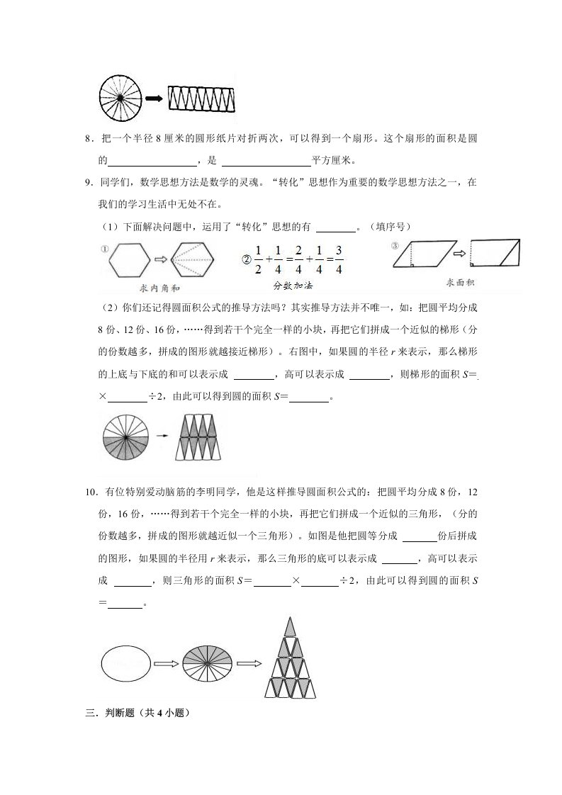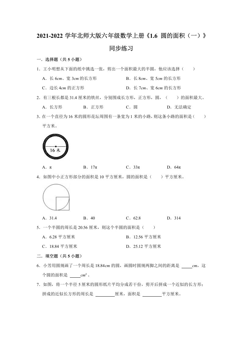 六年级数学上册1.6圆的面积(一)》同步练习(有答案)(北师大版)_共10页