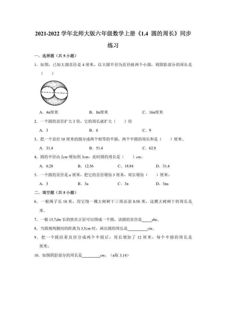 当前位置: 首页小学资源小学六年级正文 六年级数学上册1.4圆的周长》同步练习(有答案)(北师大版)_共7页 小学六年级 7 天前 0 0 5 以上为部分内容预览,如需源文档请登录您的会员账号进行下载! 声明:本站所有文章,如无特殊说明或标注,均为本站原创发布。任何个人或组织,在未征得本站同意时,禁止复制、盗用、采集、发布本站内容到任何网站、书籍等各类媒体平台。如若本站内容侵犯了原著者的合法权益,可联系我们进行处理。 尚学资源永久会员 打赏 收藏 海报 链接