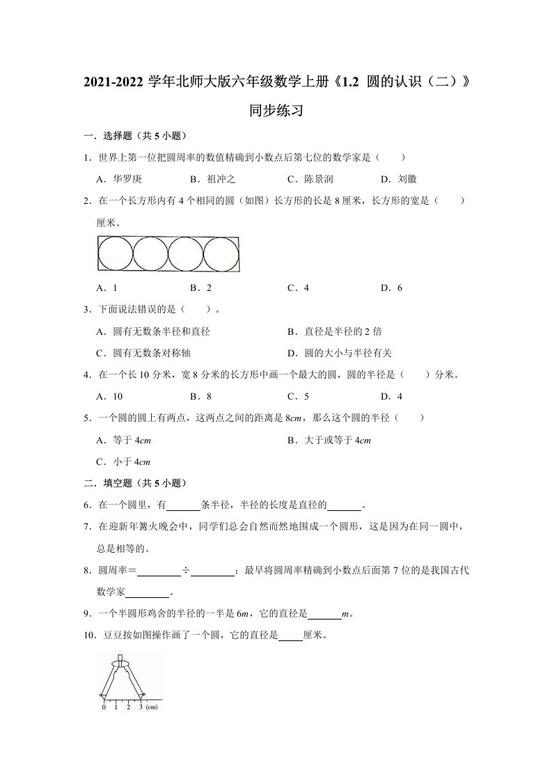 当前位置: 首页小学资源小学六年级正文 六年级数学上册1.2圆的认识(二)》同步练习(有答案)(北师大版)_共7页 小学六年级 7 天前 0 0 5 以上为部分内容预览,如需源文档请登录您的会员账号进行下载! 声明:本站所有文章,如无特殊说明或标注,均为本站原创发布。任何个人或组织,在未征得本站同意时,禁止复制、盗用、采集、发布本站内容到任何网站、书籍等各类媒体平台。如若本站内容侵犯了原著者的合法权益,可联系我们进行处理。 尚学资源永久会员 打赏 收藏 海报 链接
