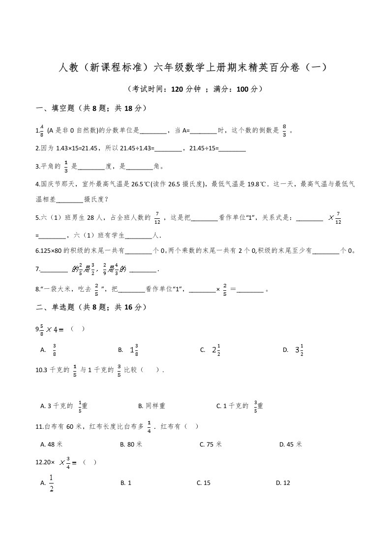 当前位置: 首页小学资源小学六年级正文 六年级数学上册期末精英百分卷(一)(人教版)_共9页 小学六年级 7 天前 0 0 5 以上为部分内容预览,如需源文档请登录您的会员账号进行下载! 声明:本站所有文章,如无特殊说明或标注,均为本站原创发布。任何个人或组织,在未征得本站同意时,禁止复制、盗用、采集、发布本站内容到任何网站、书籍等各类媒体平台。如若本站内容侵犯了原著者的合法权益,可联系我们进行处理。 尚学资源永久会员 打赏 收藏 海报 链接