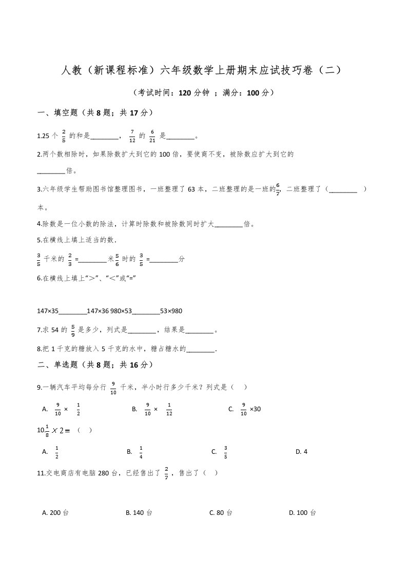 当前位置: 首页小学资源小学六年级正文 六年级数学上册期末应试技巧卷(二)(人教版)_共11页 小学六年级 6 天前 0 0 10 以上为部分内容预览,如需源文档请登录您的会员账号进行下载! 声明:本站所有文章,如无特殊说明或标注,均为本站原创发布。任何个人或组织,在未征得本站同意时,禁止复制、盗用、采集、发布本站内容到任何网站、书籍等各类媒体平台。如若本站内容侵犯了原著者的合法权益,可联系我们进行处理。 尚学资源永久会员 打赏 收藏 海报 链接