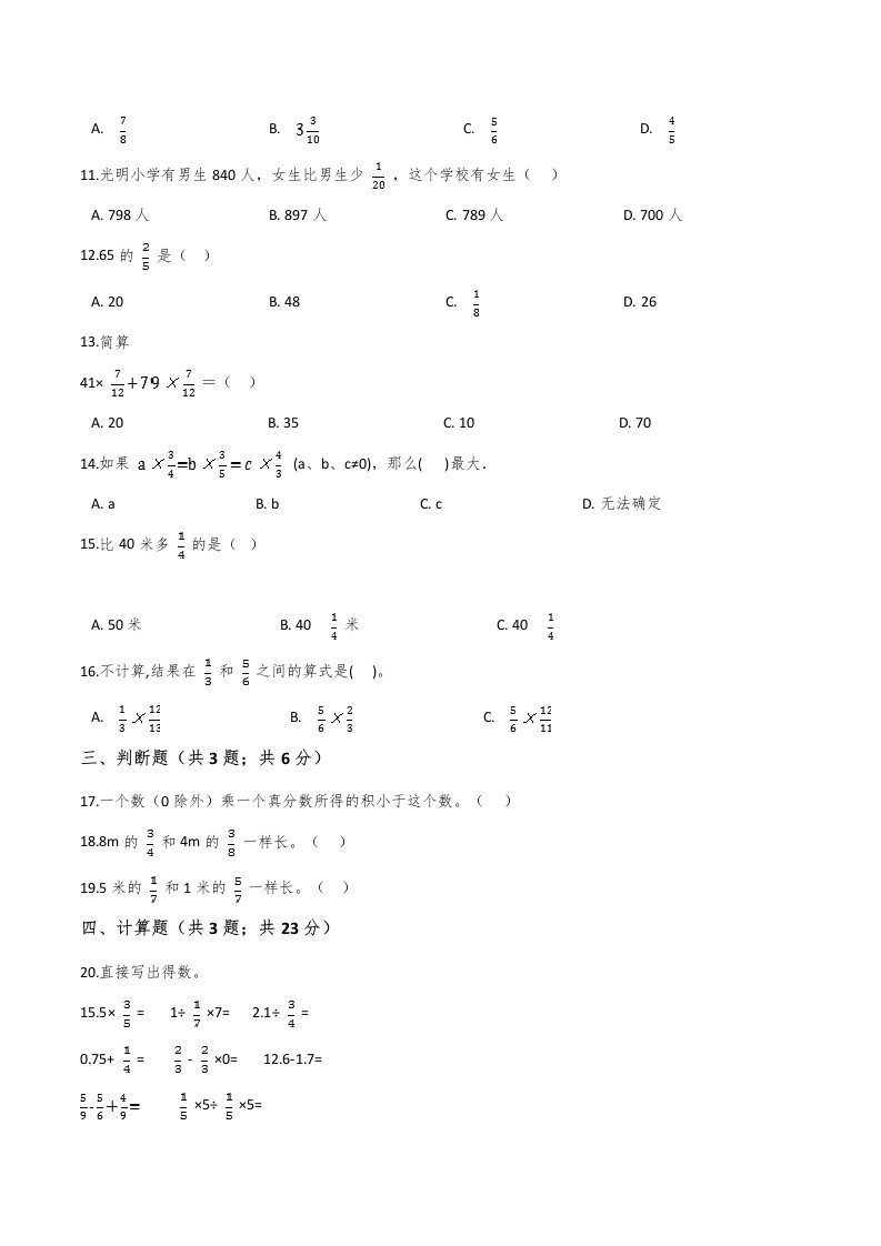 当前位置: 首页小学资源小学六年级正文 六年级数学上册期末应试技巧卷(三)(人教版)_共12页 小学六年级 6 天前 0 0 10 以上为部分内容预览,如需源文档请登录您的会员账号进行下载! 声明:本站所有文章,如无特殊说明或标注,均为本站原创发布。任何个人或组织,在未征得本站同意时,禁止复制、盗用、采集、发布本站内容到任何网站、书籍等各类媒体平台。如若本站内容侵犯了原著者的合法权益,可联系我们进行处理。 尚学资源永久会员 打赏 收藏 海报 链接