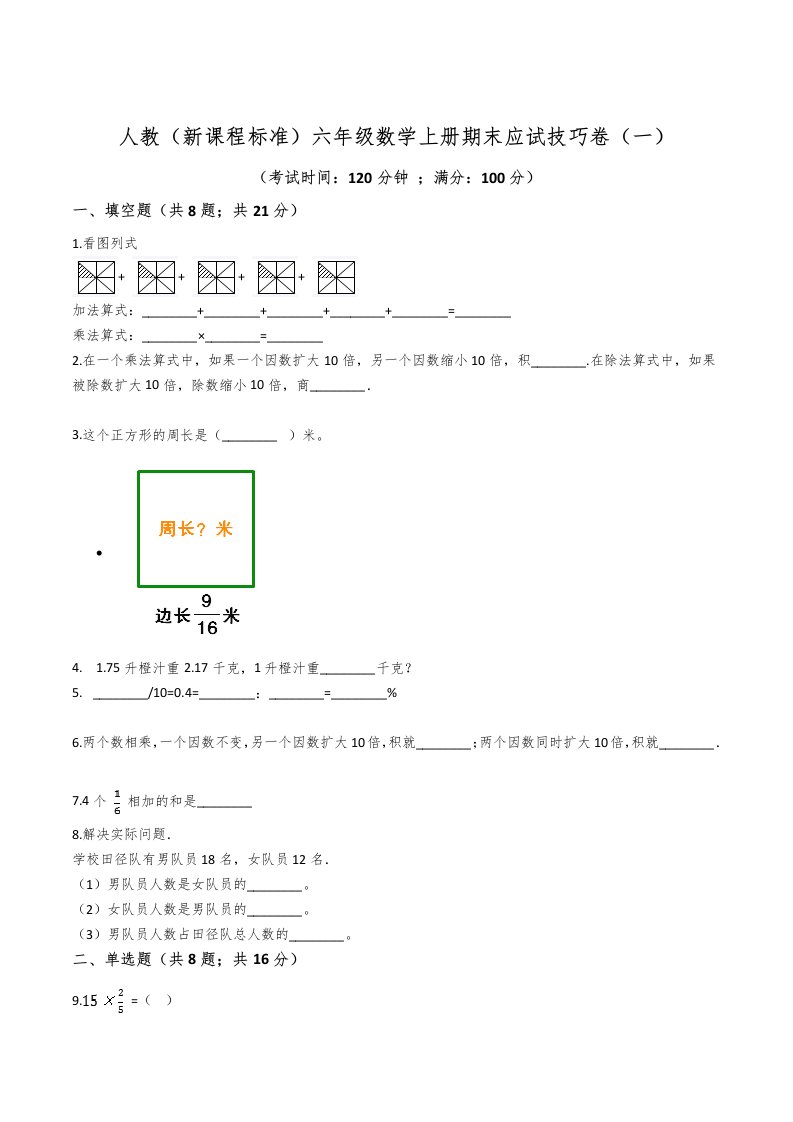 当前位置: 首页小学资源小学六年级正文 六年级数学上册期末应试技巧卷(一)(人教版)_共11页 小学六年级 7 天前 0 0 10 以上为部分内容预览,如需源文档请登录您的会员账号进行下载! 声明:本站所有文章,如无特殊说明或标注,均为本站原创发布。任何个人或组织,在未征得本站同意时,禁止复制、盗用、采集、发布本站内容到任何网站、书籍等各类媒体平台。如若本站内容侵犯了原著者的合法权益,可联系我们进行处理。 尚学资源永久会员 打赏 收藏 海报 链接