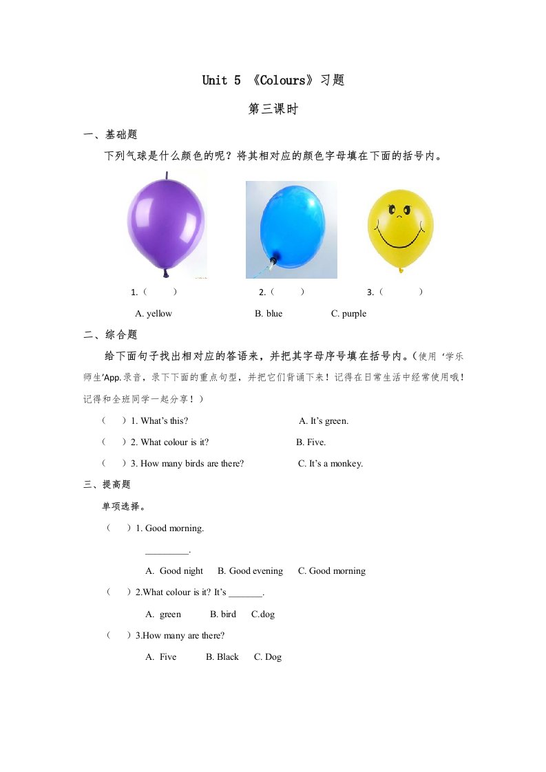 当前位置: 首页小学资源小学一年级正文 一年级英语上册Colours习(9)(人教一起点)_共2页 小学一年级 2 周前 0 0 5 以上为部分内容预览,如需源文档请登录您的会员账号进行下载! 声明:本站所有文章,如无特殊说明或标注,均为本站原创发布。任何个人或组织,在未征得本站同意时,禁止复制、盗用、采集、发布本站内容到任何网站、书籍等各类媒体平台。如若本站内容侵犯了原著者的合法权益,可联系我们进行处理。 尚学资源永久会员 打赏 收藏 海报 链接