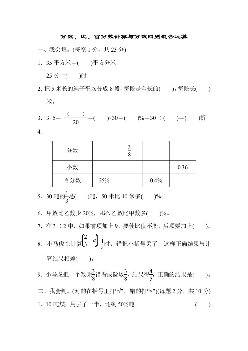 六年级数学上册专项复习卷2(苏教版)_共8页