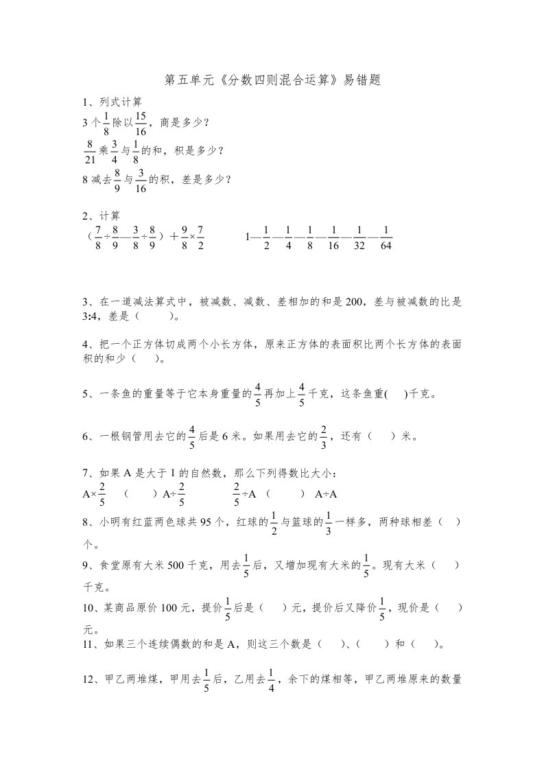 当前位置: 首页小学资源小学六年级正文 六年级数学上册第五单元《分数四则混合运算》易错题(苏教版)_共4页 小学六年级 6 天前 0 0 5 以上为部分内容预览,如需源文档请登录您的会员账号进行下载! 声明:本站所有文章,如无特殊说明或标注,均为本站原创发布。任何个人或组织,在未征得本站同意时,禁止复制、盗用、采集、发布本站内容到任何网站、书籍等各类媒体平台。如若本站内容侵犯了原著者的合法权益,可联系我们进行处理。 尚学资源永久会员 打赏 收藏 海报 链接