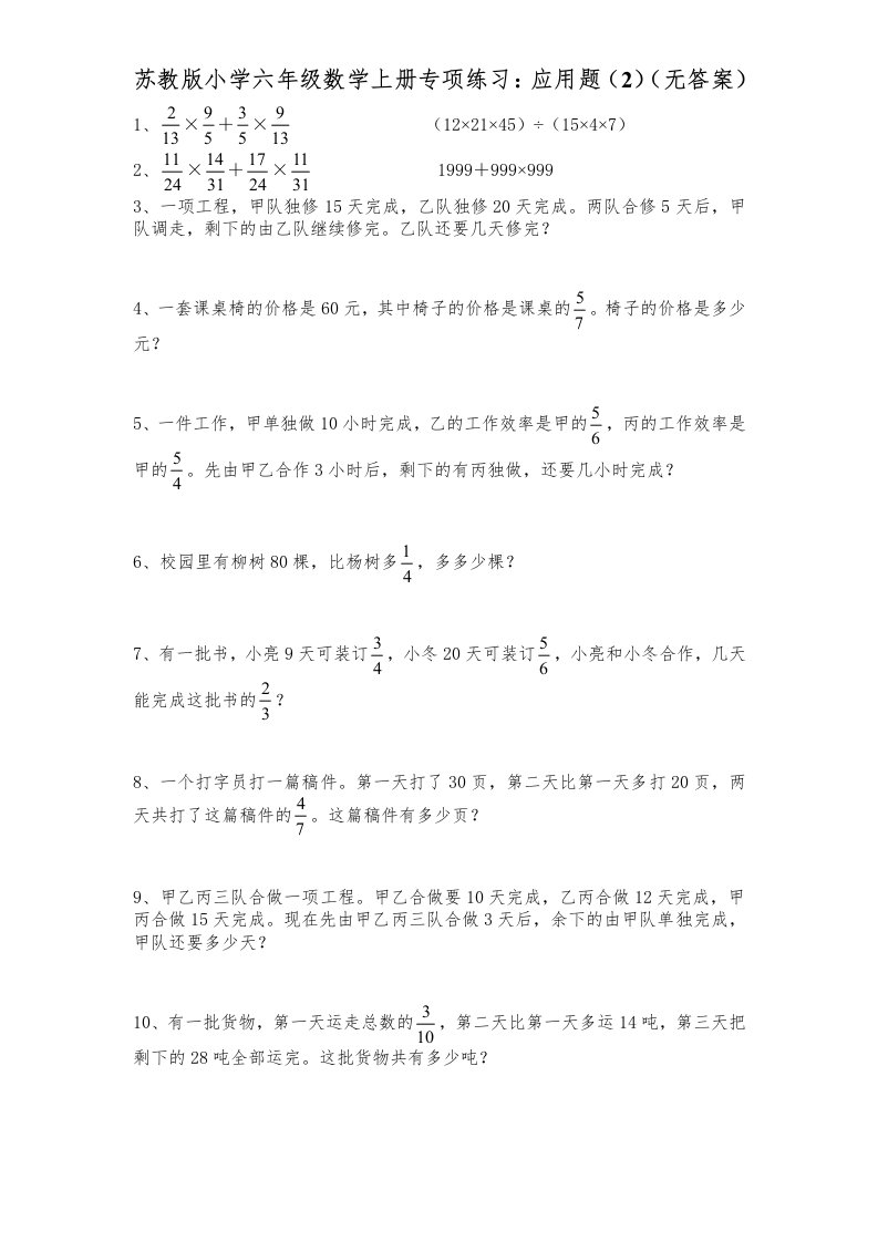 当前位置: 首页小学资源小学六年级正文 六年级数学上册专项练习:应用题(2)(无答案)(苏教版)_共6页 小学六年级 6 天前 0 0 5 以上为部分内容预览,如需源文档请登录您的会员账号进行下载! 声明:本站所有文章,如无特殊说明或标注,均为本站原创发布。任何个人或组织,在未征得本站同意时,禁止复制、盗用、采集、发布本站内容到任何网站、书籍等各类媒体平台。如若本站内容侵犯了原著者的合法权益,可联系我们进行处理。 尚学资源永久会员 打赏 收藏 海报 链接
