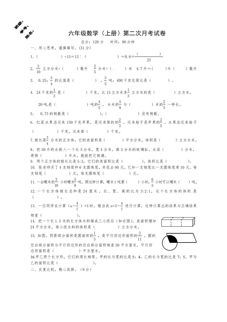 当前位置: 首页小学资源小学六年级正文 六年级数学上册第二次月考试卷(苏教版)_共6页 小学六年级 6 天前 0 0 5 以上为部分内容预览,如需源文档请登录您的会员账号进行下载! 声明:本站所有文章,如无特殊说明或标注,均为本站原创发布。任何个人或组织,在未征得本站同意时,禁止复制、盗用、采集、发布本站内容到任何网站、书籍等各类媒体平台。如若本站内容侵犯了原著者的合法权益,可联系我们进行处理。 尚学资源永久会员 打赏 收藏 海报 链接