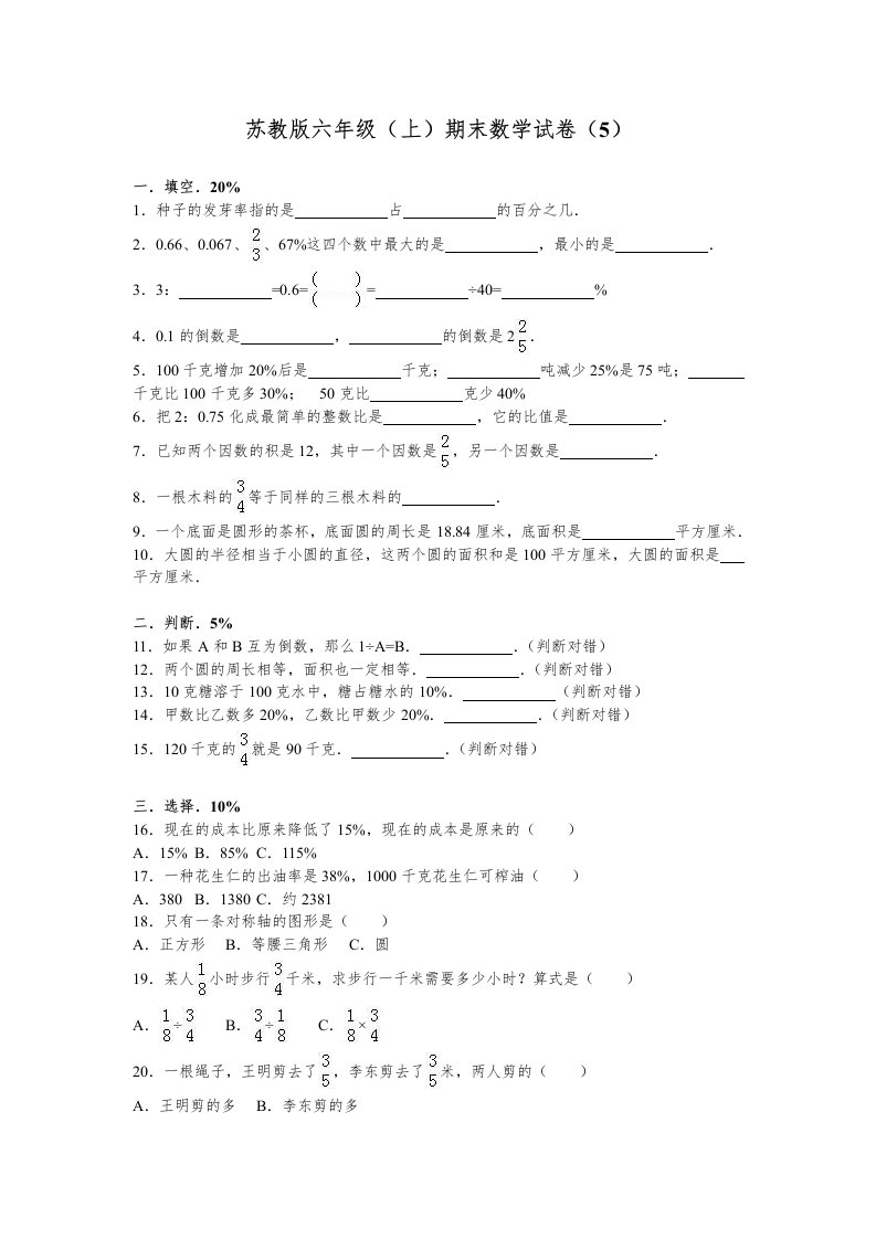 当前位置: 首页小学资源小学六年级正文 六年级数学上册苏教版六年级上学期期末测试卷4期末检测试卷(苏教版)_共20页 小学六年级 6 天前 0 0 10 以上为部分内容预览,如需源文档请登录您的会员账号进行下载! 声明:本站所有文章,如无特殊说明或标注,均为本站原创发布。任何个人或组织,在未征得本站同意时,禁止复制、盗用、采集、发布本站内容到任何网站、书籍等各类媒体平台。如若本站内容侵犯了原著者的合法权益,可联系我们进行处理。 尚学资源永久会员 打赏 收藏 海报 链接