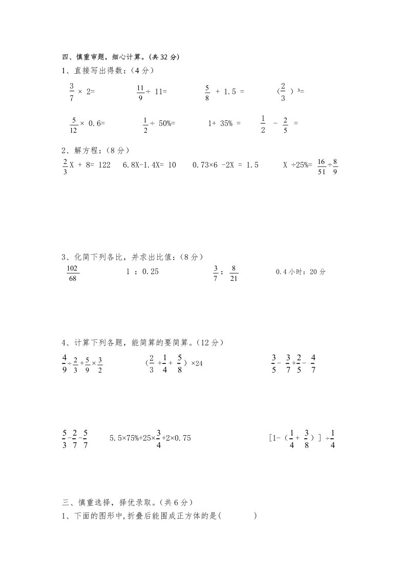 当前位置: 首页小学资源小学六年级正文 六年级数学上册期末试卷附答案(苏教版)_共13页 小学六年级 6 天前 0 0 10 以上为部分内容预览,如需源文档请登录您的会员账号进行下载! 声明:本站所有文章,如无特殊说明或标注,均为本站原创发布。任何个人或组织,在未征得本站同意时,禁止复制、盗用、采集、发布本站内容到任何网站、书籍等各类媒体平台。如若本站内容侵犯了原著者的合法权益,可联系我们进行处理。 尚学资源永久会员 打赏 收藏 海报 链接