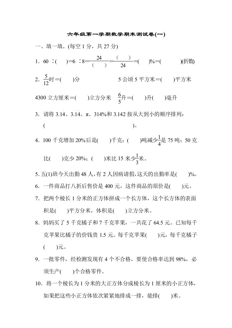 当前位置: 首页小学资源小学六年级正文 六年级数学上册期末测试卷(一)(苏教版)_共12页 小学六年级 6 天前 0 0 10 以上为部分内容预览,如需源文档请登录您的会员账号进行下载! 声明:本站所有文章,如无特殊说明或标注,均为本站原创发布。任何个人或组织,在未征得本站同意时,禁止复制、盗用、采集、发布本站内容到任何网站、书籍等各类媒体平台。如若本站内容侵犯了原著者的合法权益,可联系我们进行处理。 尚学资源永久会员 打赏 收藏 海报 链接
