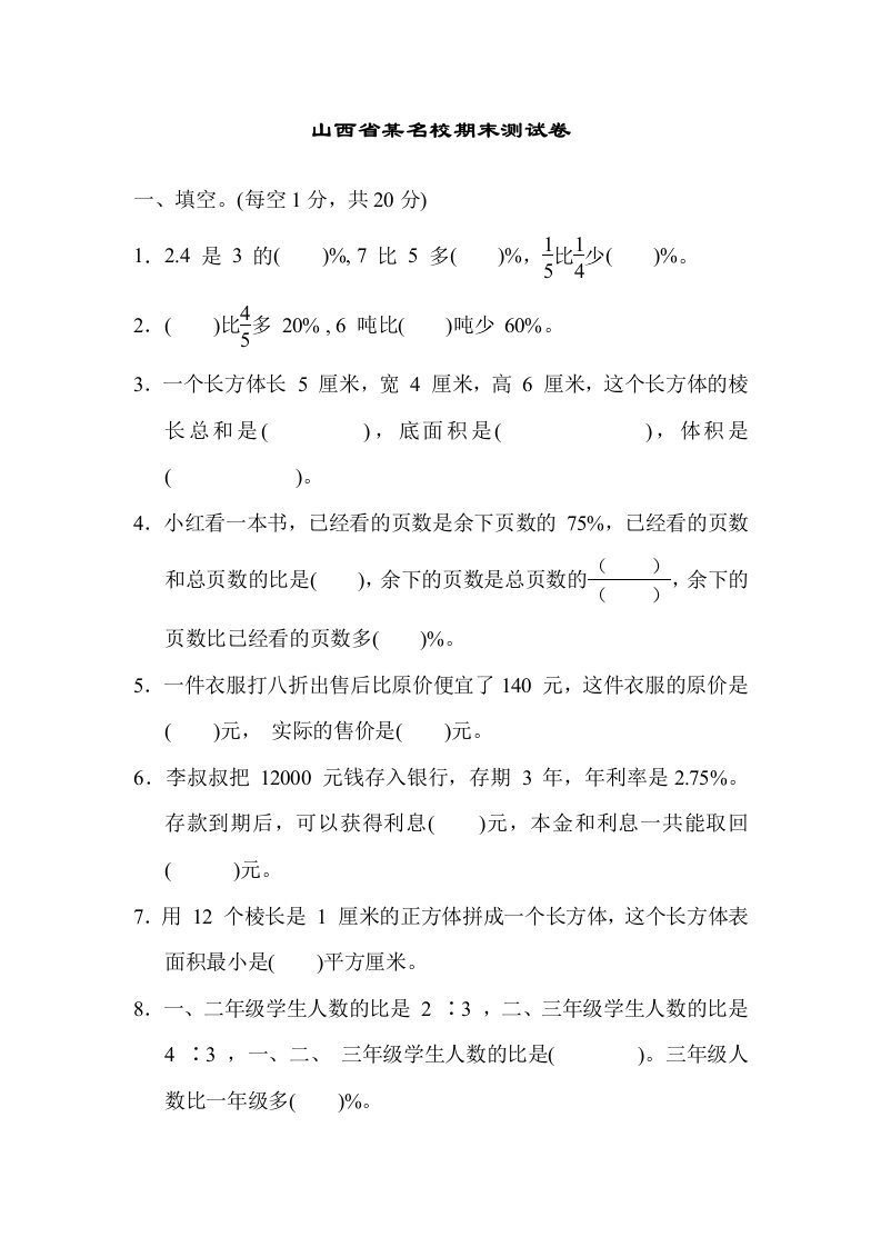 当前位置: 首页小学资源小学六年级正文 六年级数学上册山西省某名校期末测试卷(苏教版)_共10页 小学六年级 6 天前 0 0 5 以上为部分内容预览,如需源文档请登录您的会员账号进行下载! 声明:本站所有文章,如无特殊说明或标注,均为本站原创发布。任何个人或组织,在未征得本站同意时,禁止复制、盗用、采集、发布本站内容到任何网站、书籍等各类媒体平台。如若本站内容侵犯了原著者的合法权益,可联系我们进行处理。 尚学资源永久会员 打赏 收藏 海报 链接