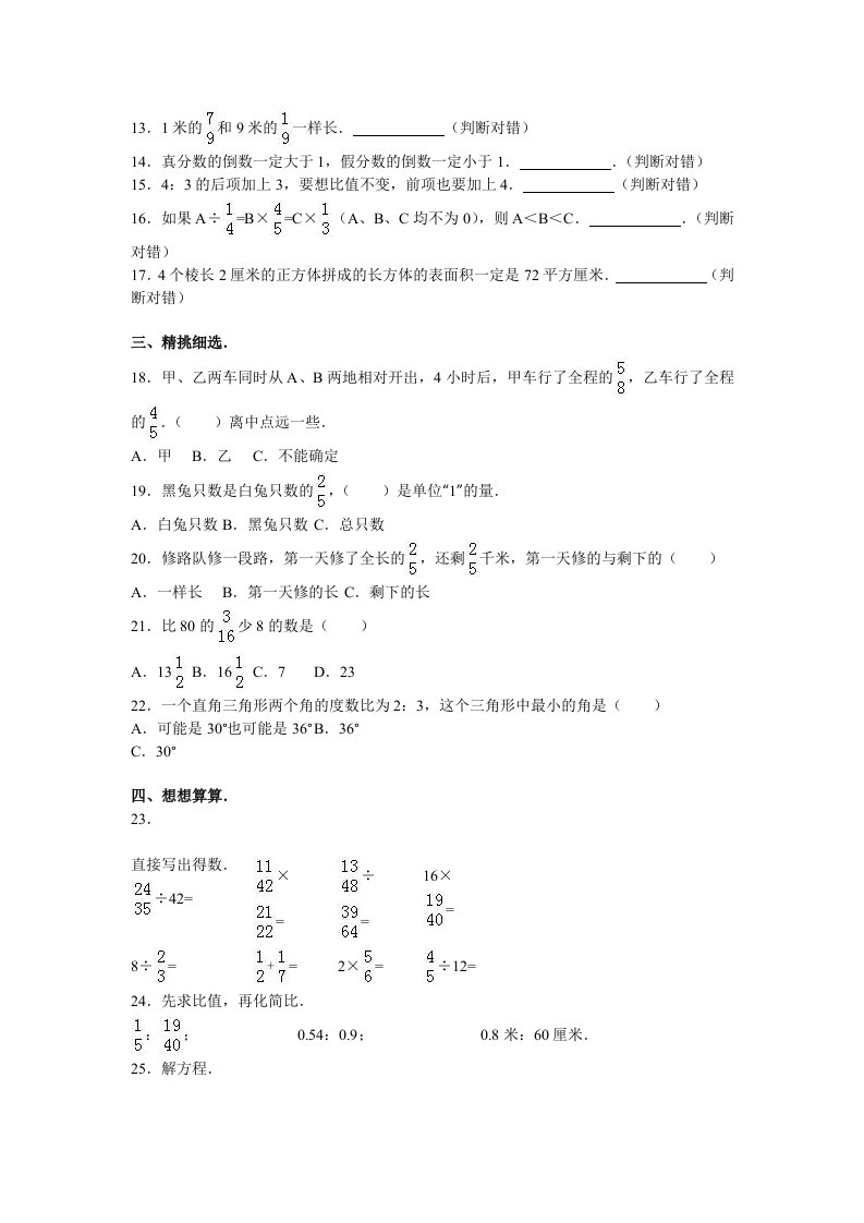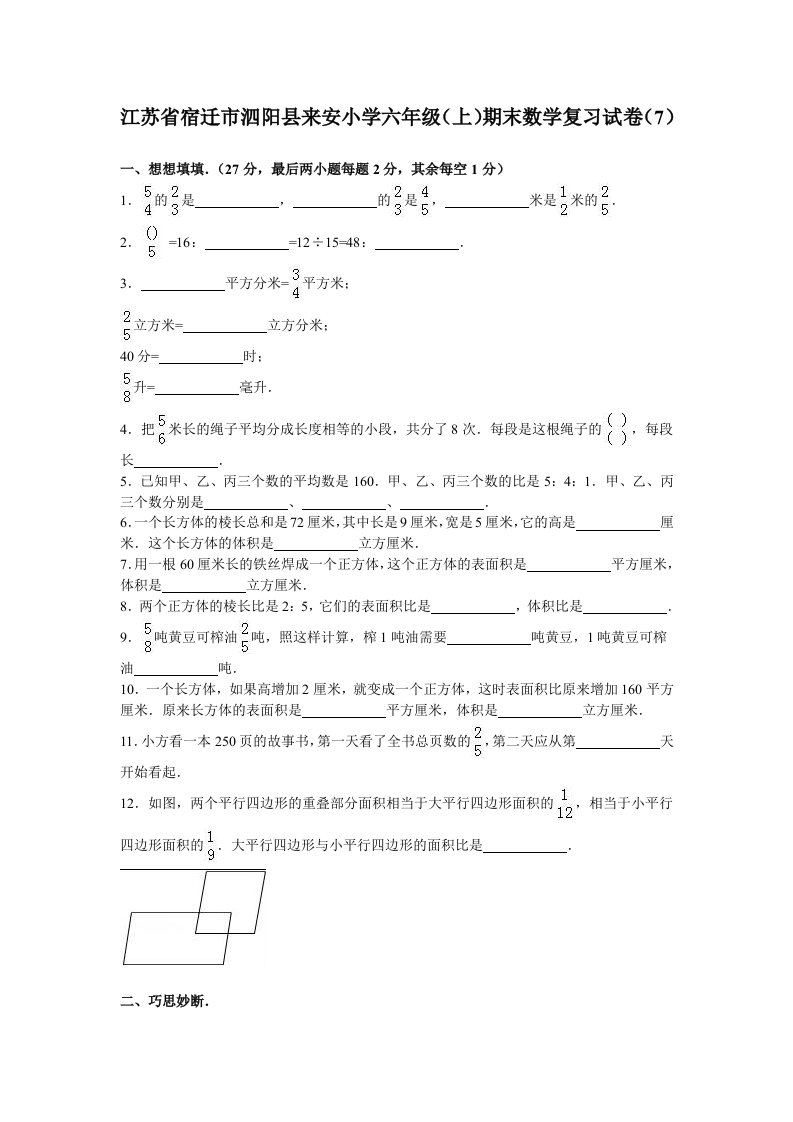 六年级数学上册学期期末测试卷8(苏教版)_共18页