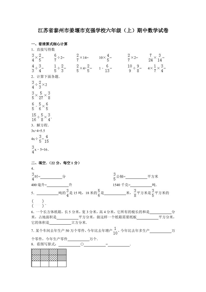 六年级数学上册学期期末测试卷6(苏教版)_共17页