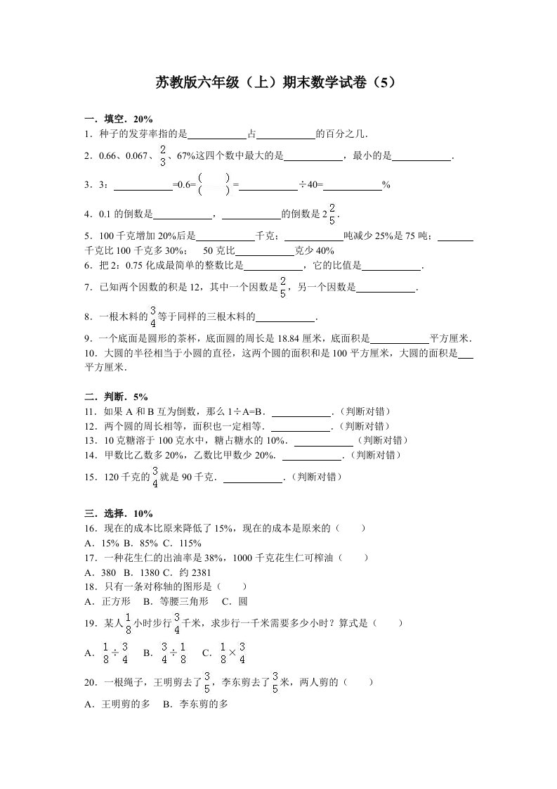 当前位置: 首页小学资源小学六年级正文 六年级数学上册学期期末测试卷4(苏教版)_共14页 小学六年级 6 天前 0 0 10 以上为部分内容预览,如需源文档请登录您的会员账号进行下载! 声明:本站所有文章,如无特殊说明或标注,均为本站原创发布。任何个人或组织,在未征得本站同意时,禁止复制、盗用、采集、发布本站内容到任何网站、书籍等各类媒体平台。如若本站内容侵犯了原著者的合法权益,可联系我们进行处理。 尚学资源永久会员 打赏 收藏 海报 链接