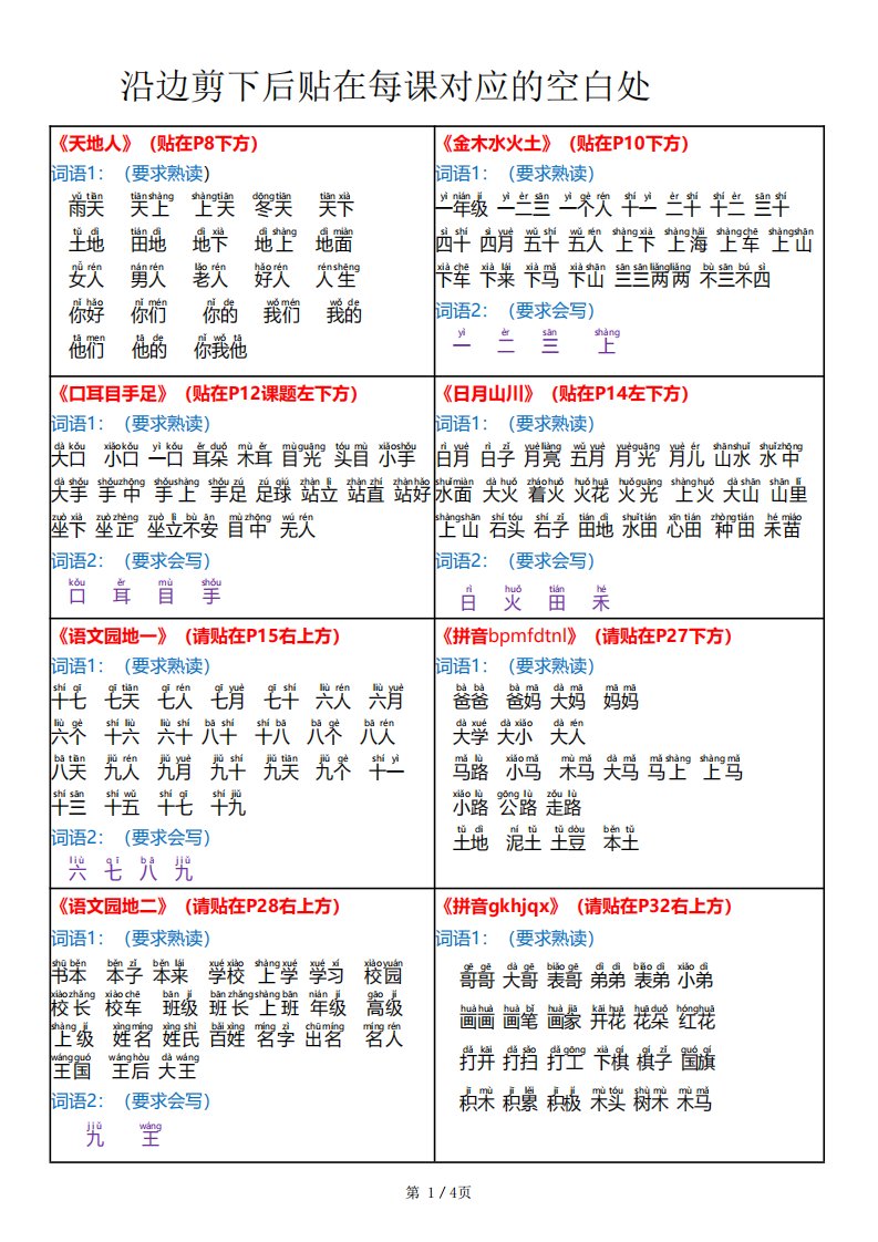 当前位置: 首页小学资源小学一年级正文 24秋版课课贴一年级上册语文每课重点书贴【贴在空白处4页】_共4页 小学一年级 2 周前 0 0 5 以上为部分内容预览,如需源文档请登录您的会员账号进行下载! 声明:本站所有文章,如无特殊说明或标注,均为本站原创发布。任何个人或组织,在未征得本站同意时,禁止复制、盗用、采集、发布本站内容到任何网站、书籍等各类媒体平台。如若本站内容侵犯了原著者的合法权益,可联系我们进行处理。 尚学资源永久会员 打赏 收藏 海报 链接