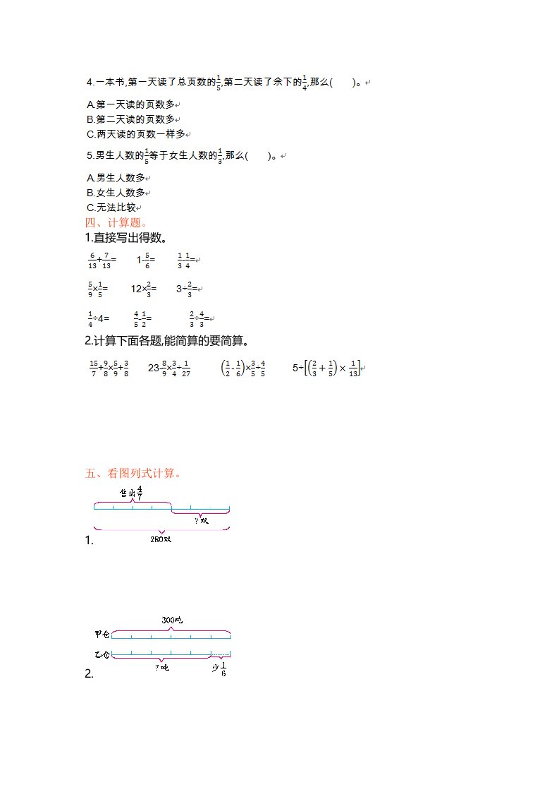 六年级数学上册单元测试第五单元分数四则混合运算丨(苏教版)_共4页