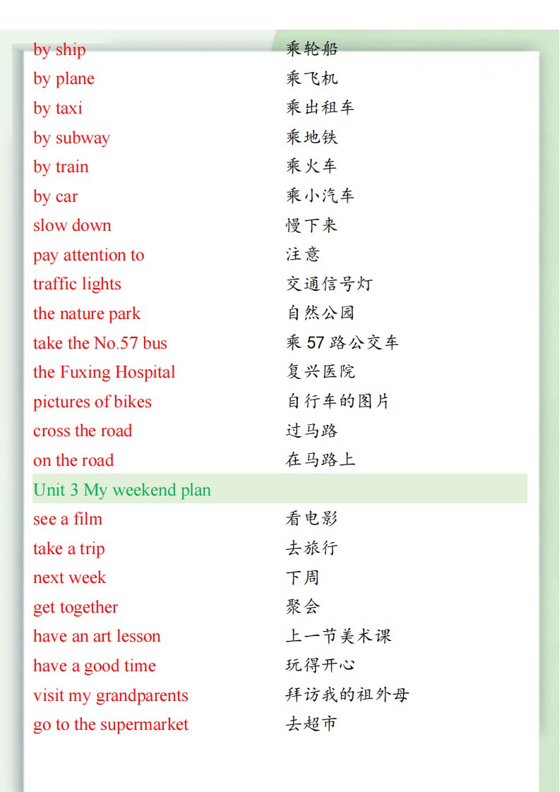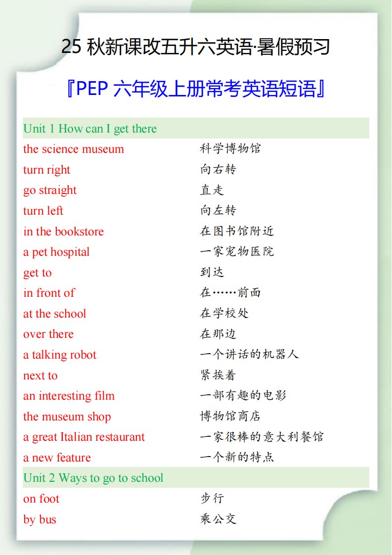 【2025秋新版】六年级上册常考英语短语_共4页