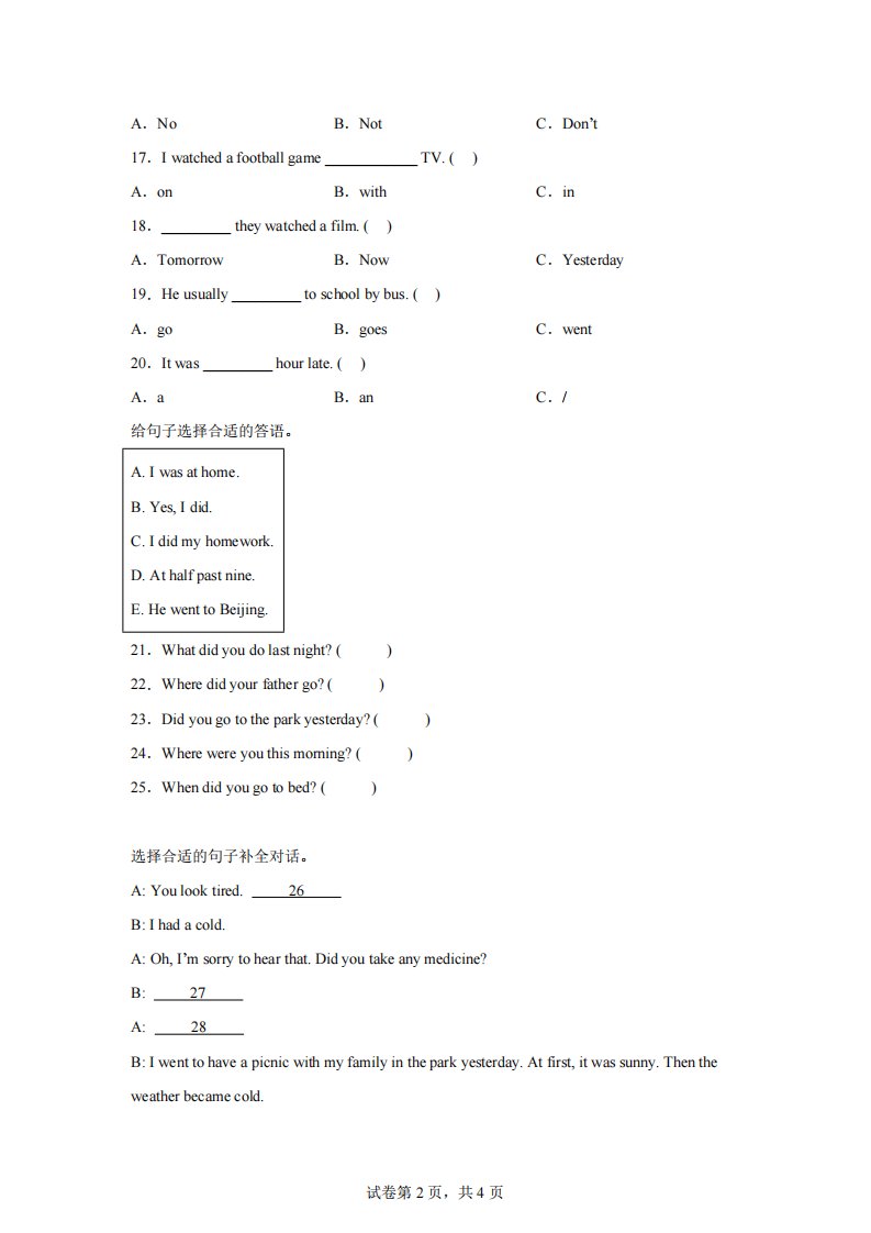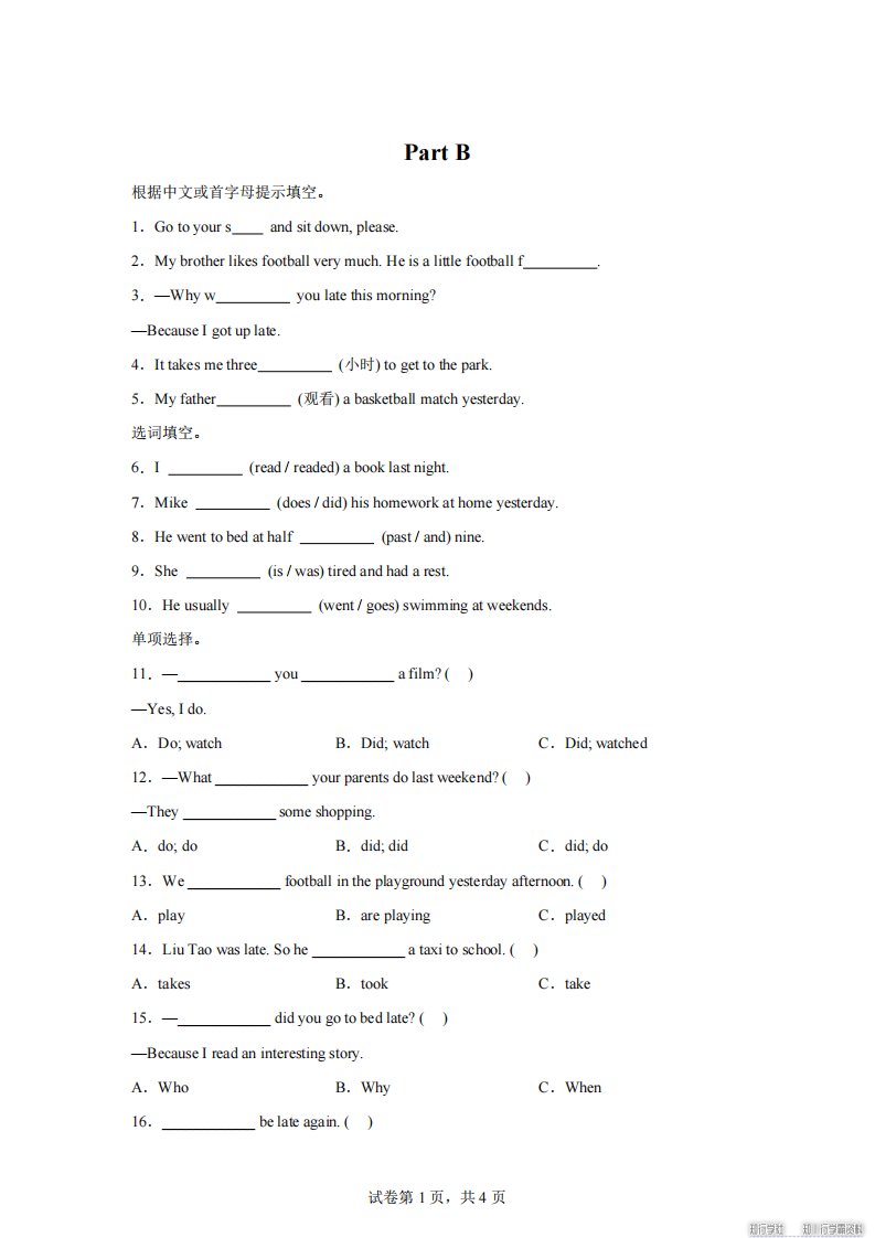 闽教版英语六年级上册Unit6PartB练习卷_共9页