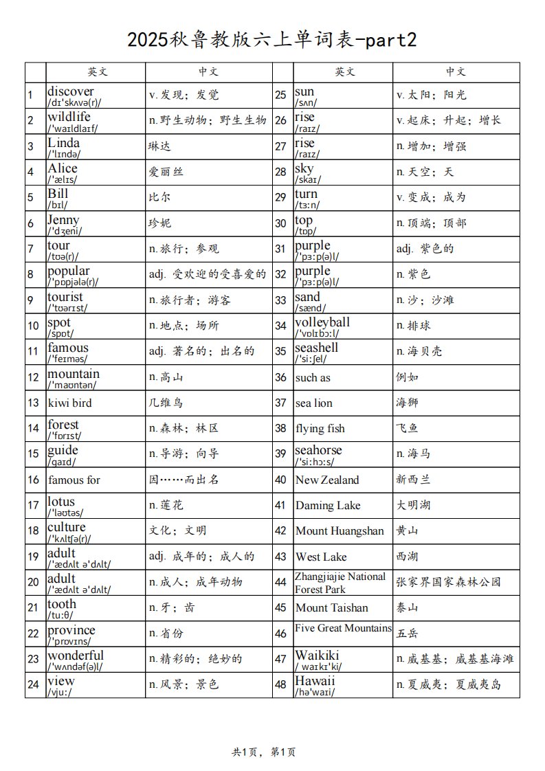当前位置: 首页小学资源小学六年级正文 2025秋鲁教版六上英语单词表-part2_共1页 小学六年级 6 天前 0 0 5 以上为部分内容预览,如需源文档请登录您的会员账号进行下载! 声明:本站所有文章,如无特殊说明或标注,均为本站原创发布。任何个人或组织,在未征得本站同意时,禁止复制、盗用、采集、发布本站内容到任何网站、书籍等各类媒体平台。如若本站内容侵犯了原著者的合法权益,可联系我们进行处理。 尚学资源永久会员 打赏 收藏 海报 链接
