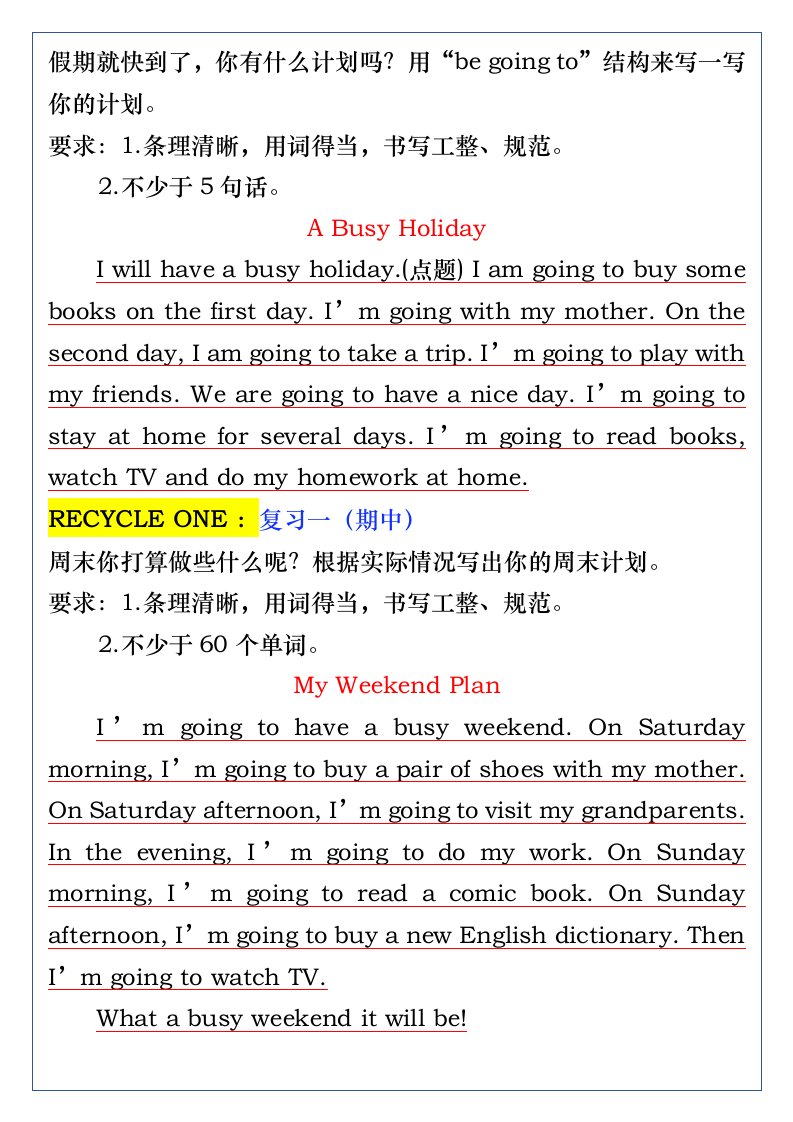 当前位置: 首页小学资源小学六年级正文 五升六年级英语上册暑假预习·必写作文汇总-六上英语_共5页 小学六年级 6 天前 0 0 5 以上为部分内容预览,如需源文档请登录您的会员账号进行下载! 声明:本站所有文章,如无特殊说明或标注,均为本站原创发布。任何个人或组织,在未征得本站同意时,禁止复制、盗用、采集、发布本站内容到任何网站、书籍等各类媒体平台。如若本站内容侵犯了原著者的合法权益,可联系我们进行处理。 尚学资源永久会员 打赏 收藏 海报 链接