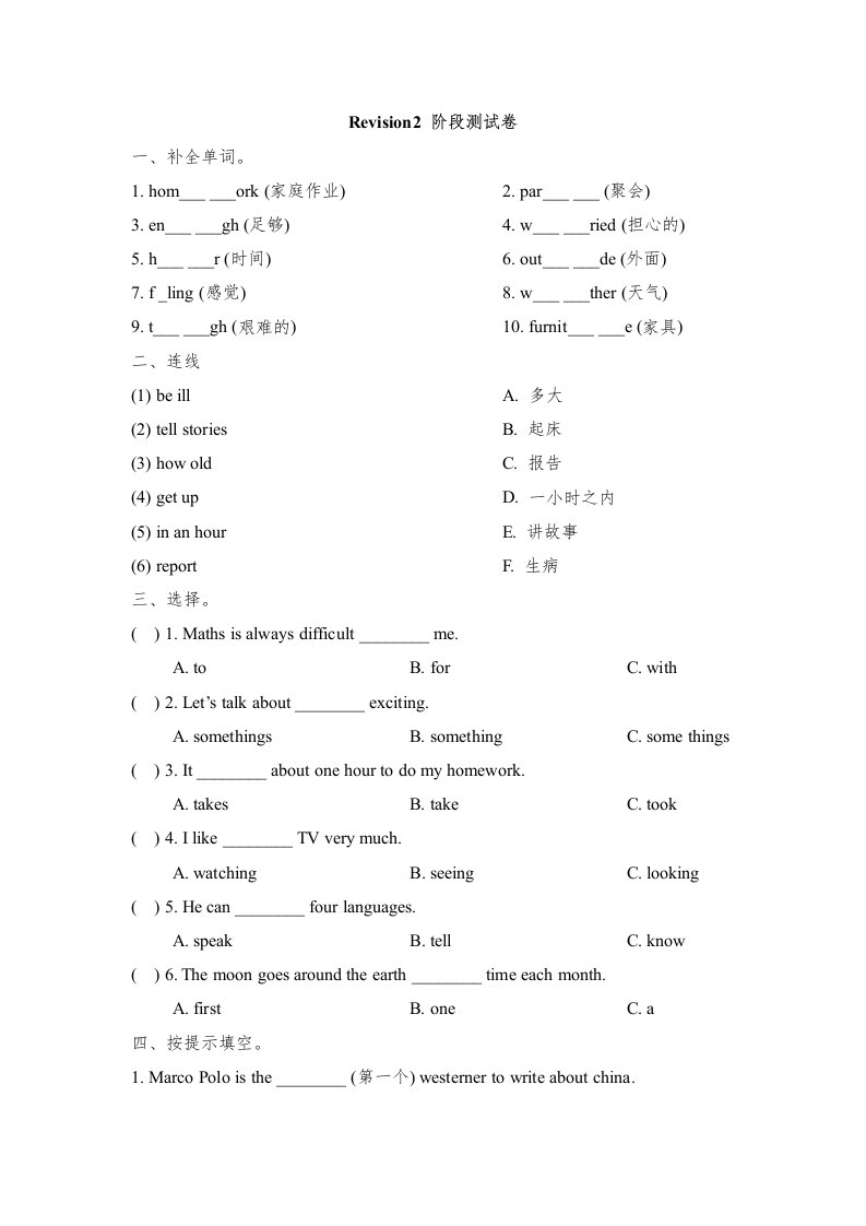 当前位置: 首页小学资源小学六年级正文 六年级英语上册Revision2_阶段测试卷(人教版一起点)_共4页 小学六年级 6 天前 0 0 5 以上为部分内容预览,如需源文档请登录您的会员账号进行下载! 声明:本站所有文章,如无特殊说明或标注,均为本站原创发布。任何个人或组织,在未征得本站同意时,禁止复制、盗用、采集、发布本站内容到任何网站、书籍等各类媒体平台。如若本站内容侵犯了原著者的合法权益,可联系我们进行处理。 尚学资源永久会员 打赏 收藏 海报 链接