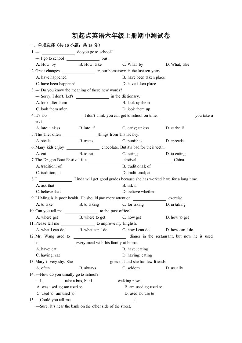 当前位置: 首页小学资源小学六年级正文 六年级英语上册期中测试卷(人教版一起点)_共5页 小学六年级 6 天前 0 0 5 以上为部分内容预览,如需源文档请登录您的会员账号进行下载! 声明:本站所有文章,如无特殊说明或标注,均为本站原创发布。任何个人或组织,在未征得本站同意时,禁止复制、盗用、采集、发布本站内容到任何网站、书籍等各类媒体平台。如若本站内容侵犯了原著者的合法权益,可联系我们进行处理。 尚学资源永久会员 打赏 收藏 海报 链接