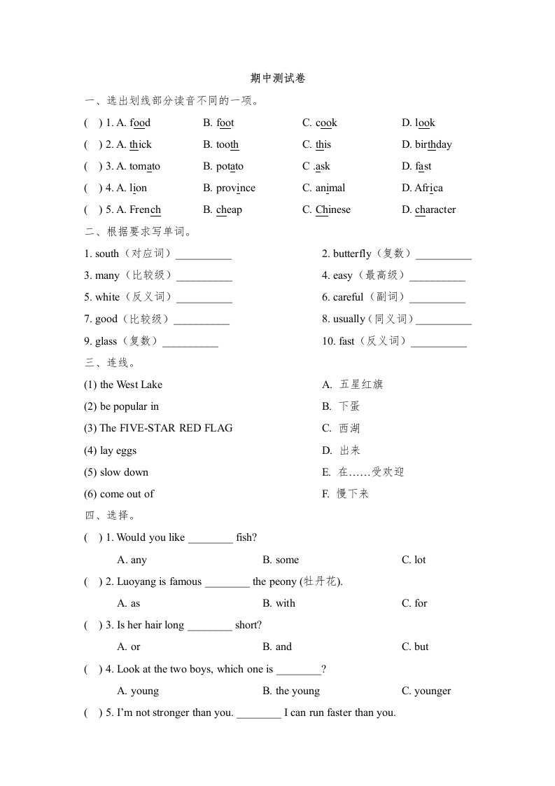 当前位置: 首页小学资源小学六年级正文 六年级英语上册期中测试卷(人教版一起点)_共3页 小学六年级 6 天前 0 0 5 以上为部分内容预览,如需源文档请登录您的会员账号进行下载! 声明:本站所有文章,如无特殊说明或标注,均为本站原创发布。任何个人或组织,在未征得本站同意时,禁止复制、盗用、采集、发布本站内容到任何网站、书籍等各类媒体平台。如若本站内容侵犯了原著者的合法权益,可联系我们进行处理。 尚学资源永久会员 打赏 收藏 海报 链接
