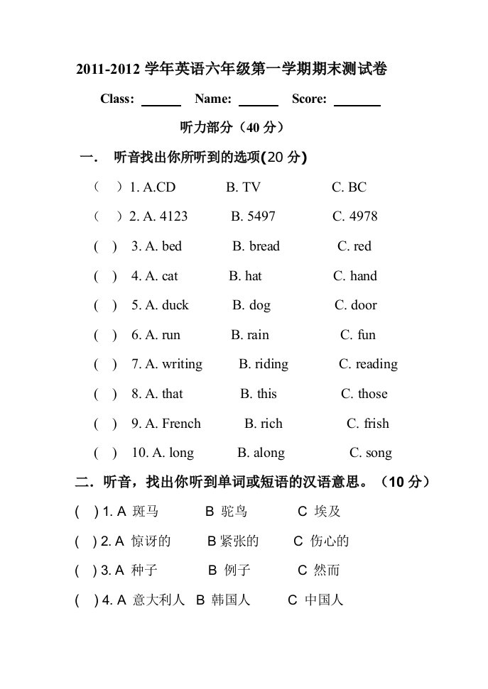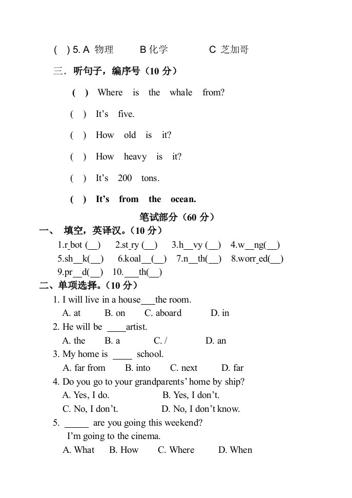 当前位置: 首页小学资源小学六年级正文 六年级英语上册期末试卷2(人教版一起点)_共5页 小学六年级 6 天前 0 0 5 以上为部分内容预览,如需源文档请登录您的会员账号进行下载! 声明:本站所有文章,如无特殊说明或标注,均为本站原创发布。任何个人或组织,在未征得本站同意时,禁止复制、盗用、采集、发布本站内容到任何网站、书籍等各类媒体平台。如若本站内容侵犯了原著者的合法权益,可联系我们进行处理。 尚学资源永久会员 打赏 收藏 海报 链接