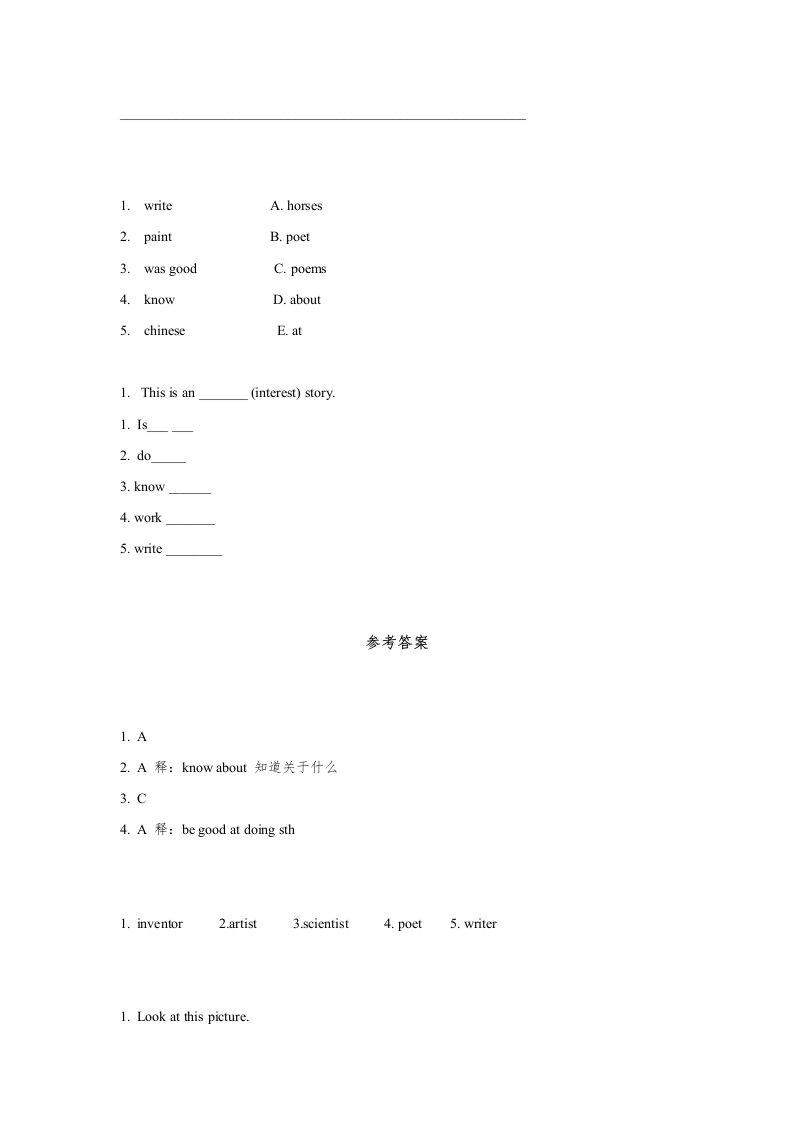 当前位置: 首页小学资源小学六年级正文 六年级英语上册同步练习Unit5Leson3(人教版一起点)_共3页 小学六年级 6 天前 0 0 5 以上为部分内容预览,如需源文档请登录您的会员账号进行下载! 声明:本站所有文章,如无特殊说明或标注,均为本站原创发布。任何个人或组织,在未征得本站同意时,禁止复制、盗用、采集、发布本站内容到任何网站、书籍等各类媒体平台。如若本站内容侵犯了原著者的合法权益,可联系我们进行处理。 尚学资源永久会员 打赏 收藏 海报 链接