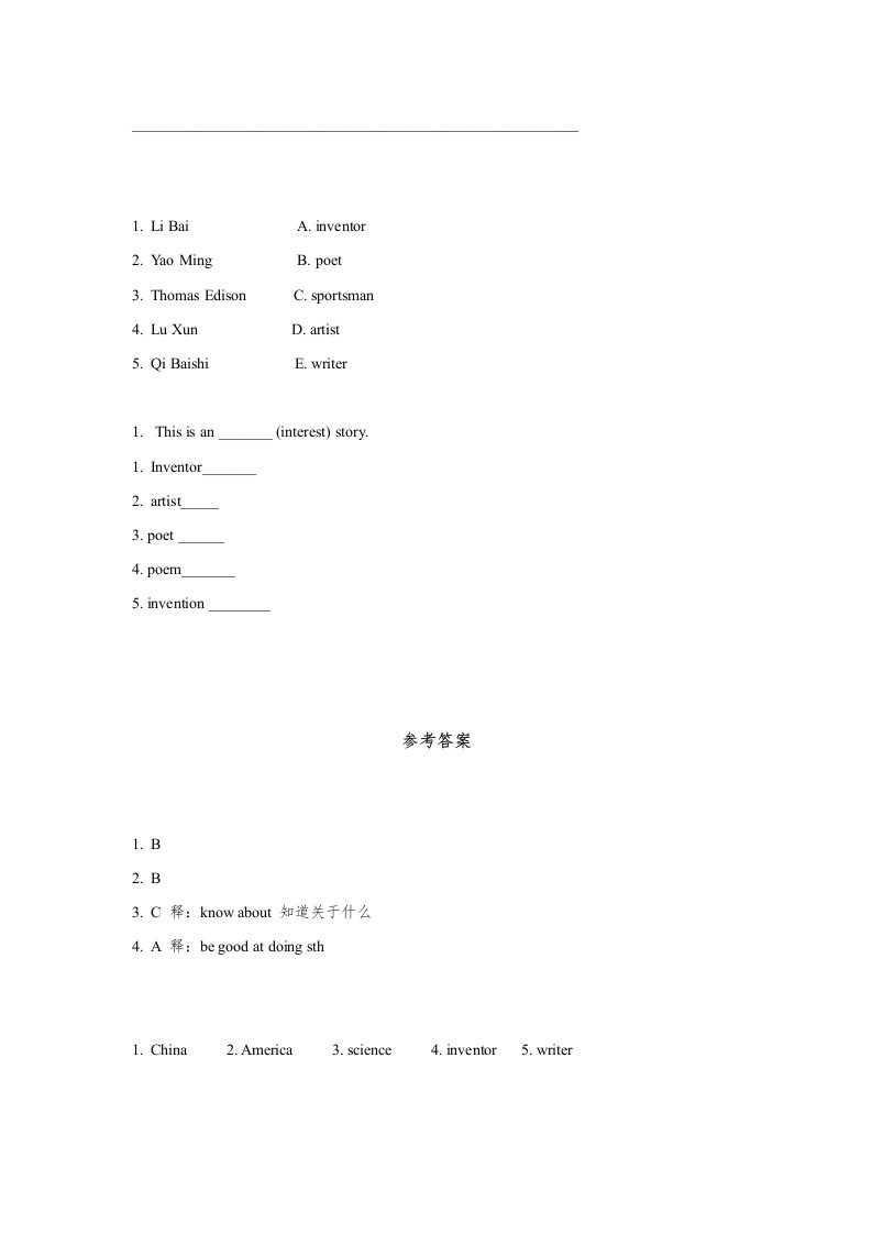 当前位置: 首页小学资源小学六年级正文 六年级英语上册同步练习Unit5Leson1(人教版一起点)_共3页 小学六年级 6 天前 0 0 5 以上为部分内容预览,如需源文档请登录您的会员账号进行下载! 声明:本站所有文章,如无特殊说明或标注,均为本站原创发布。任何个人或组织,在未征得本站同意时,禁止复制、盗用、采集、发布本站内容到任何网站、书籍等各类媒体平台。如若本站内容侵犯了原著者的合法权益,可联系我们进行处理。 尚学资源永久会员 打赏 收藏 海报 链接