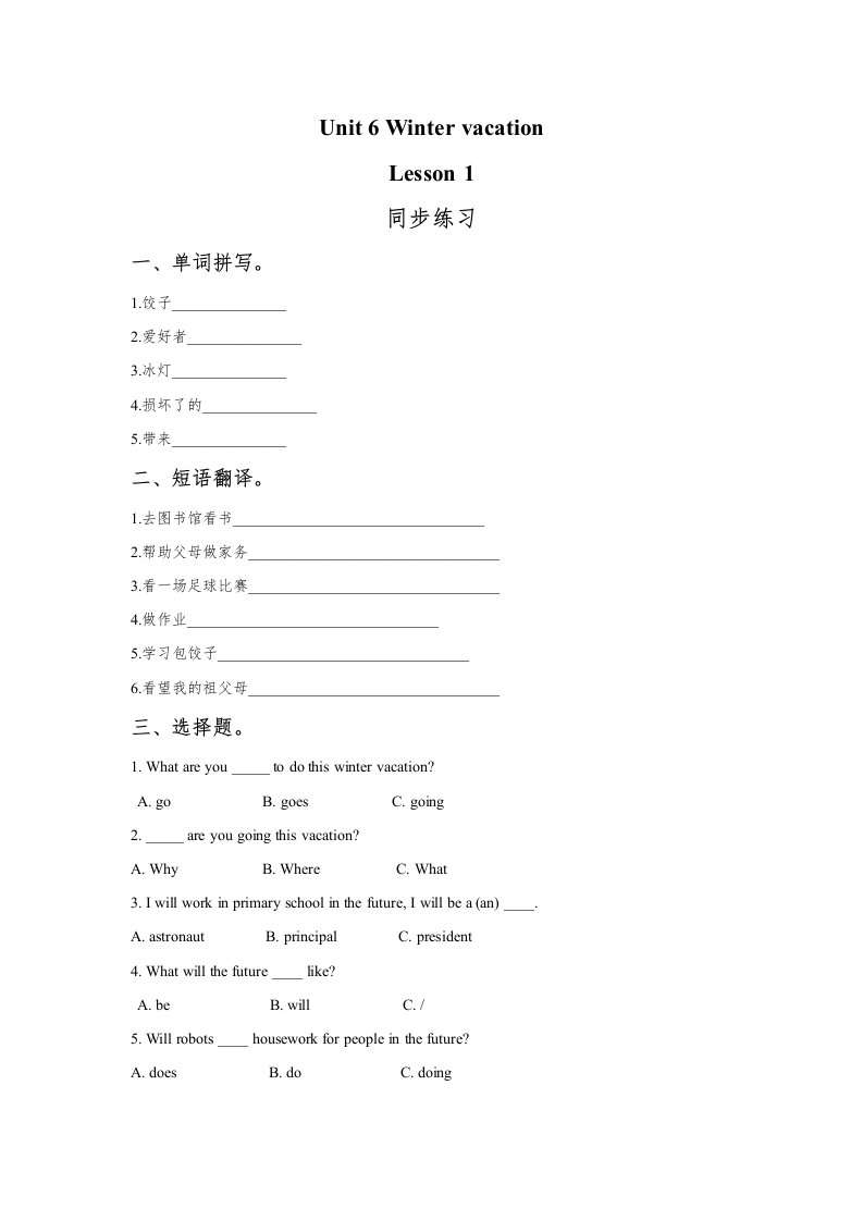 当前位置: 首页小学资源小学六年级正文 六年级英语上册Unit6WinterVacationLesson1同步练习3(人教版一起点)_共3页 小学六年级 6 天前 0 0 5 以上为部分内容预览,如需源文档请登录您的会员账号进行下载! 声明:本站所有文章,如无特殊说明或标注,均为本站原创发布。任何个人或组织,在未征得本站同意时,禁止复制、盗用、采集、发布本站内容到任何网站、书籍等各类媒体平台。如若本站内容侵犯了原著者的合法权益,可联系我们进行处理。 尚学资源永久会员 打赏 收藏 海报 链接