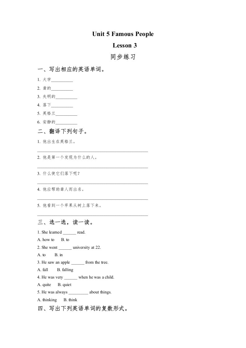 当前位置: 首页小学资源小学六年级正文 六年级英语上册Unit5FamousPeopleLesson3同步练习1(人教版一起点)_共2页 小学六年级 6 天前 0 0 5 以上为部分内容预览,如需源文档请登录您的会员账号进行下载! 声明:本站所有文章,如无特殊说明或标注,均为本站原创发布。任何个人或组织,在未征得本站同意时,禁止复制、盗用、采集、发布本站内容到任何网站、书籍等各类媒体平台。如若本站内容侵犯了原著者的合法权益,可联系我们进行处理。 尚学资源永久会员 打赏 收藏 海报 链接