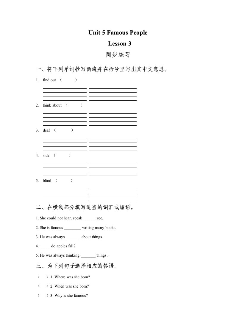 当前位置: 首页小学资源小学六年级正文 六年级英语上册Unit5FamousPeopleLesson3同步练习2(人教版一起点)_共3页 小学六年级 6 天前 0 0 5 以上为部分内容预览,如需源文档请登录您的会员账号进行下载! 声明:本站所有文章,如无特殊说明或标注,均为本站原创发布。任何个人或组织,在未征得本站同意时,禁止复制、盗用、采集、发布本站内容到任何网站、书籍等各类媒体平台。如若本站内容侵犯了原著者的合法权益,可联系我们进行处理。 尚学资源永久会员 打赏 收藏 海报 链接