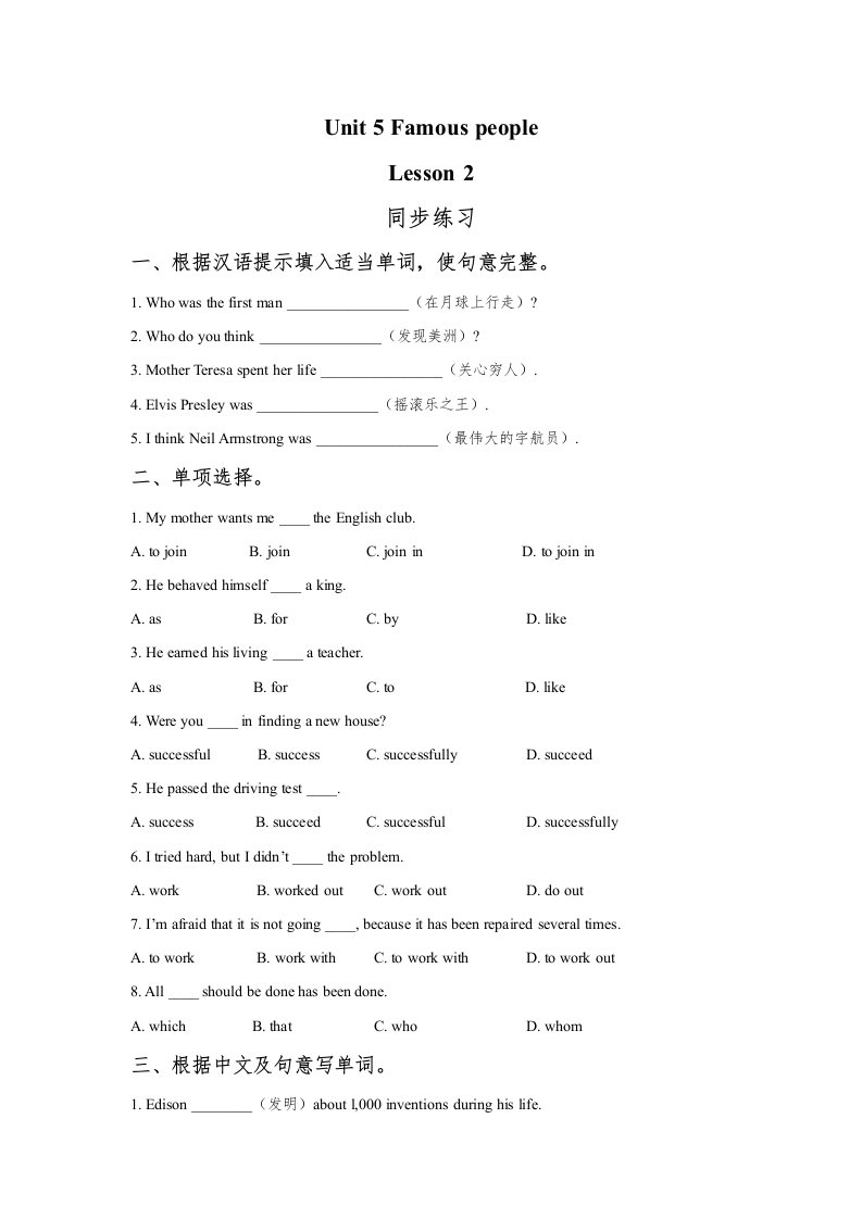 当前位置: 首页小学资源小学六年级正文 六年级英语上册Unit5FamousPeopleLesson2同步练习3(人教版一起点)_共4页 小学六年级 6 天前 0 0 5 以上为部分内容预览,如需源文档请登录您的会员账号进行下载! 声明:本站所有文章,如无特殊说明或标注,均为本站原创发布。任何个人或组织,在未征得本站同意时,禁止复制、盗用、采集、发布本站内容到任何网站、书籍等各类媒体平台。如若本站内容侵犯了原著者的合法权益,可联系我们进行处理。 尚学资源永久会员 打赏 收藏 海报 链接