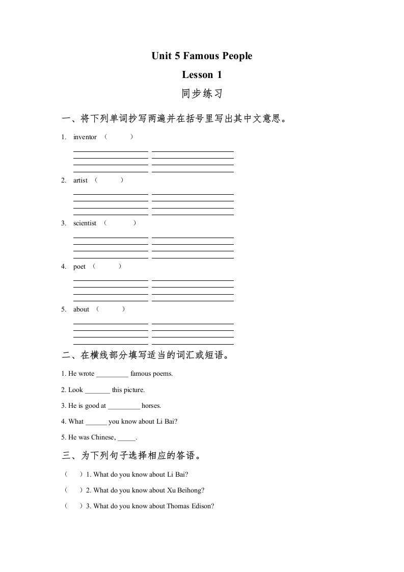 当前位置: 首页小学资源小学六年级正文 六年级英语上册Unit5FamousPeopleLesson1同步练习1(人教版一起点)_共3页 小学六年级 6 天前 0 0 5 以上为部分内容预览,如需源文档请登录您的会员账号进行下载! 声明:本站所有文章,如无特殊说明或标注,均为本站原创发布。任何个人或组织,在未征得本站同意时,禁止复制、盗用、采集、发布本站内容到任何网站、书籍等各类媒体平台。如若本站内容侵犯了原著者的合法权益,可联系我们进行处理。 尚学资源永久会员 打赏 收藏 海报 链接