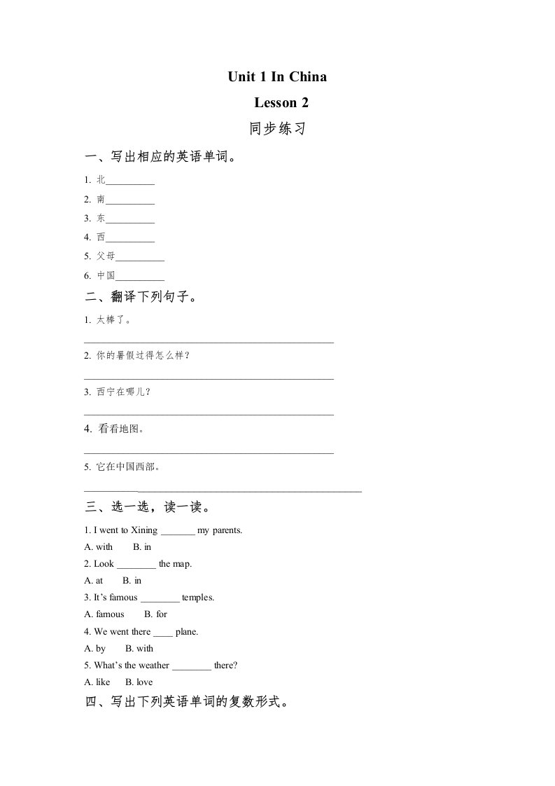 当前位置: 首页小学资源小学六年级正文 六年级英语上册Unit1InChinaLeson2同步练习1(人教版一起点)_共2页 小学六年级 6 天前 0 0 5 以上为部分内容预览,如需源文档请登录您的会员账号进行下载! 声明:本站所有文章,如无特殊说明或标注,均为本站原创发布。任何个人或组织,在未征得本站同意时,禁止复制、盗用、采集、发布本站内容到任何网站、书籍等各类媒体平台。如若本站内容侵犯了原著者的合法权益,可联系我们进行处理。 尚学资源永久会员 打赏 收藏 海报 链接