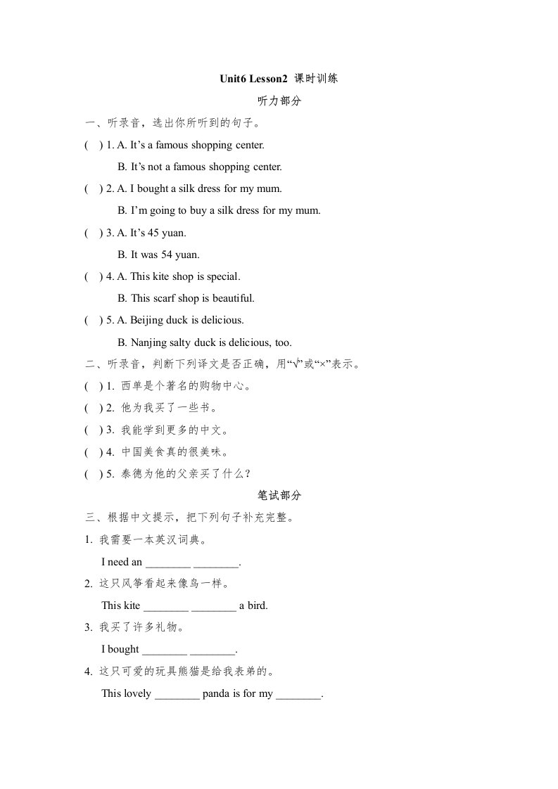 当前位置: 首页小学资源小学六年级正文 六年级英语上册Unit6_Lesson2_课时训练(人教版一起点)_共5页 小学六年级 6 天前 0 0 5 以上为部分内容预览,如需源文档请登录您的会员账号进行下载! 声明:本站所有文章,如无特殊说明或标注,均为本站原创发布。任何个人或组织,在未征得本站同意时,禁止复制、盗用、采集、发布本站内容到任何网站、书籍等各类媒体平台。如若本站内容侵犯了原著者的合法权益,可联系我们进行处理。 尚学资源永久会员 打赏 收藏 海报 链接