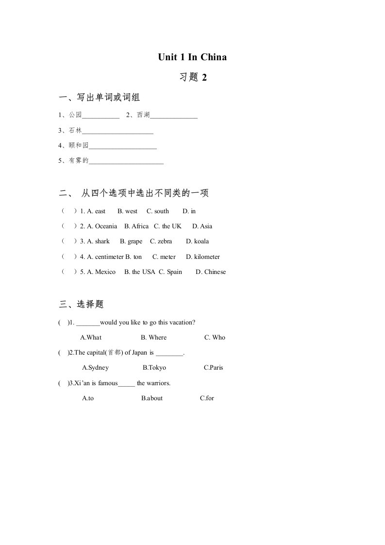 六年级英语上册Unit1InChina习题2(人教版一起点)_共1页