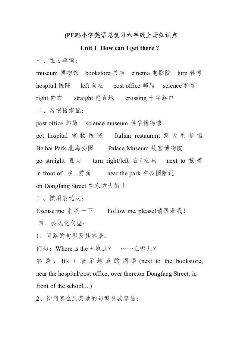 六年级英语上册知识点单元复习汇总(人教版PEP)_共19页