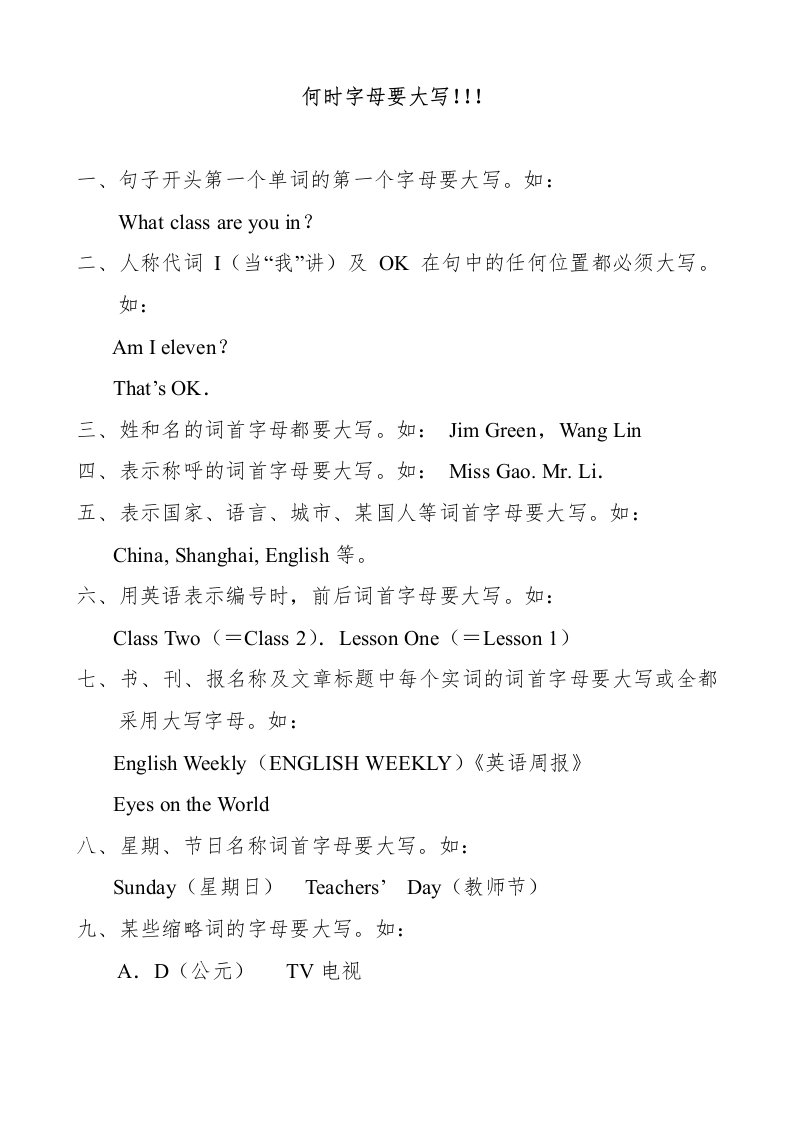 当前位置: 首页小学资源小学六年级正文 六年级英语上册何时字母要大写(人教版PEP)_共1页 小学六年级 6 天前 0 0 5 以上为部分内容预览,如需源文档请登录您的会员账号进行下载! 声明:本站所有文章,如无特殊说明或标注,均为本站原创发布。任何个人或组织,在未征得本站同意时,禁止复制、盗用、采集、发布本站内容到任何网站、书籍等各类媒体平台。如若本站内容侵犯了原著者的合法权益,可联系我们进行处理。 尚学资源永久会员 打赏 收藏 海报 链接