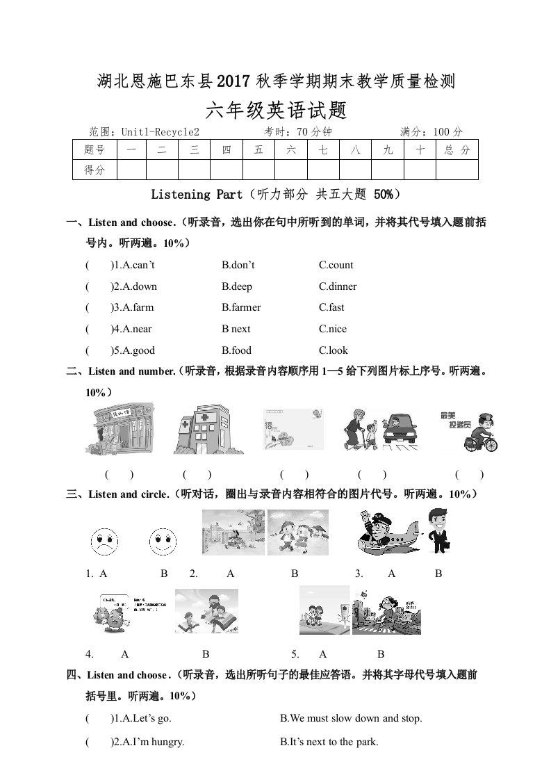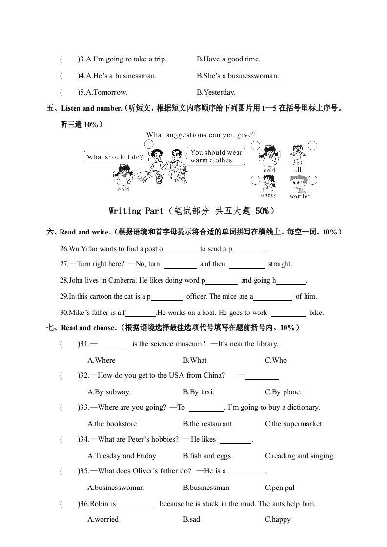 当前位置: 首页小学资源小学六年级正文 六年级英语上册湖北恩施巴东县学期期末教学质量检测试题(人教版PEP)_共5页 小学六年级 6 天前 0 0 5 以上为部分内容预览,如需源文档请登录您的会员账号进行下载! 声明:本站所有文章,如无特殊说明或标注,均为本站原创发布。任何个人或组织,在未征得本站同意时,禁止复制、盗用、采集、发布本站内容到任何网站、书籍等各类媒体平台。如若本站内容侵犯了原著者的合法权益,可联系我们进行处理。 尚学资源永久会员 打赏 收藏 海报 链接